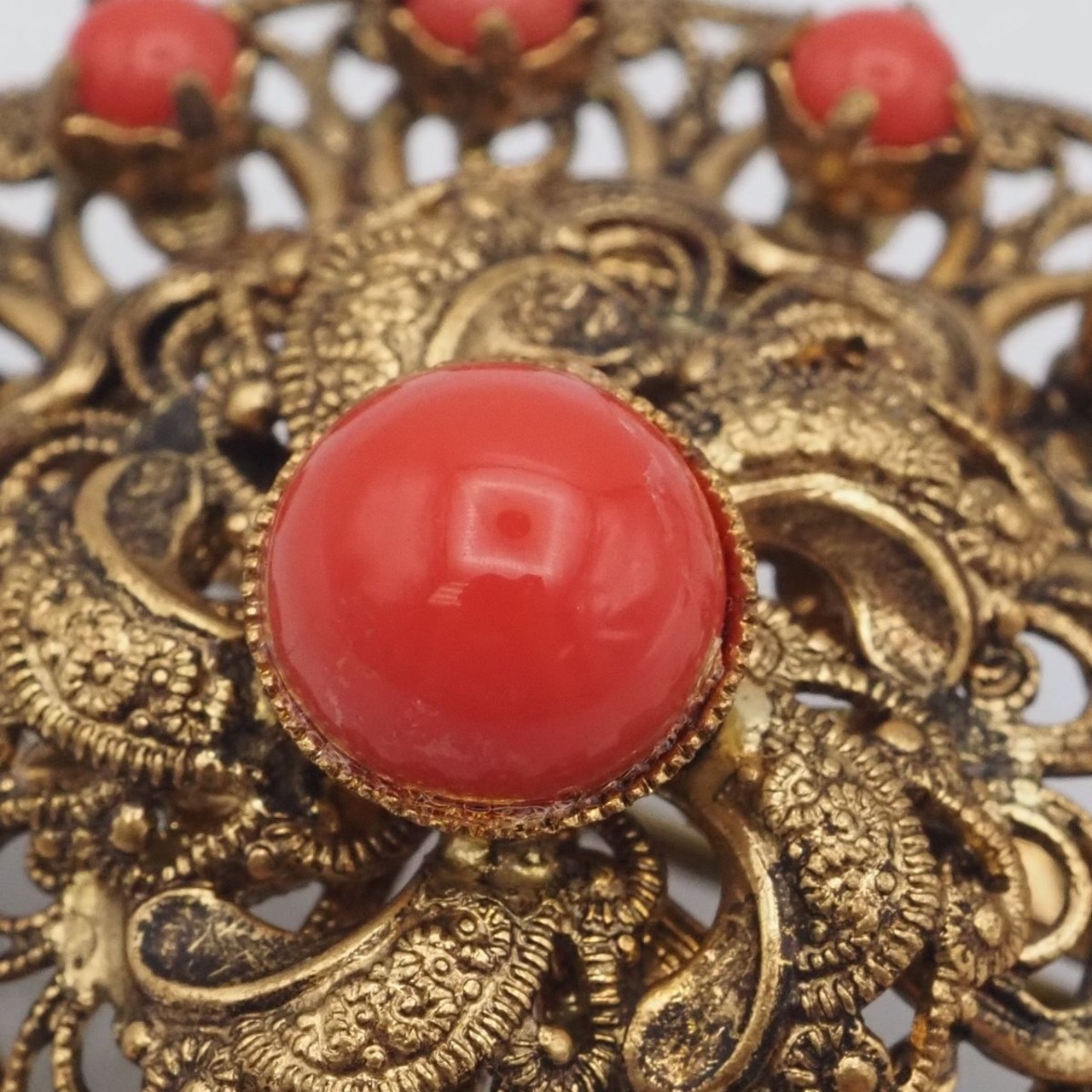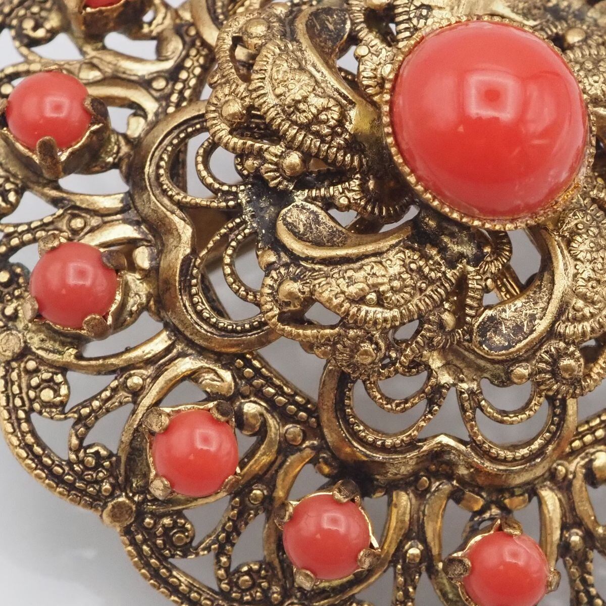 F906 ブローチ カラーストーン風 透かし彫り ゴールド デザイン コスチュームジュエリー