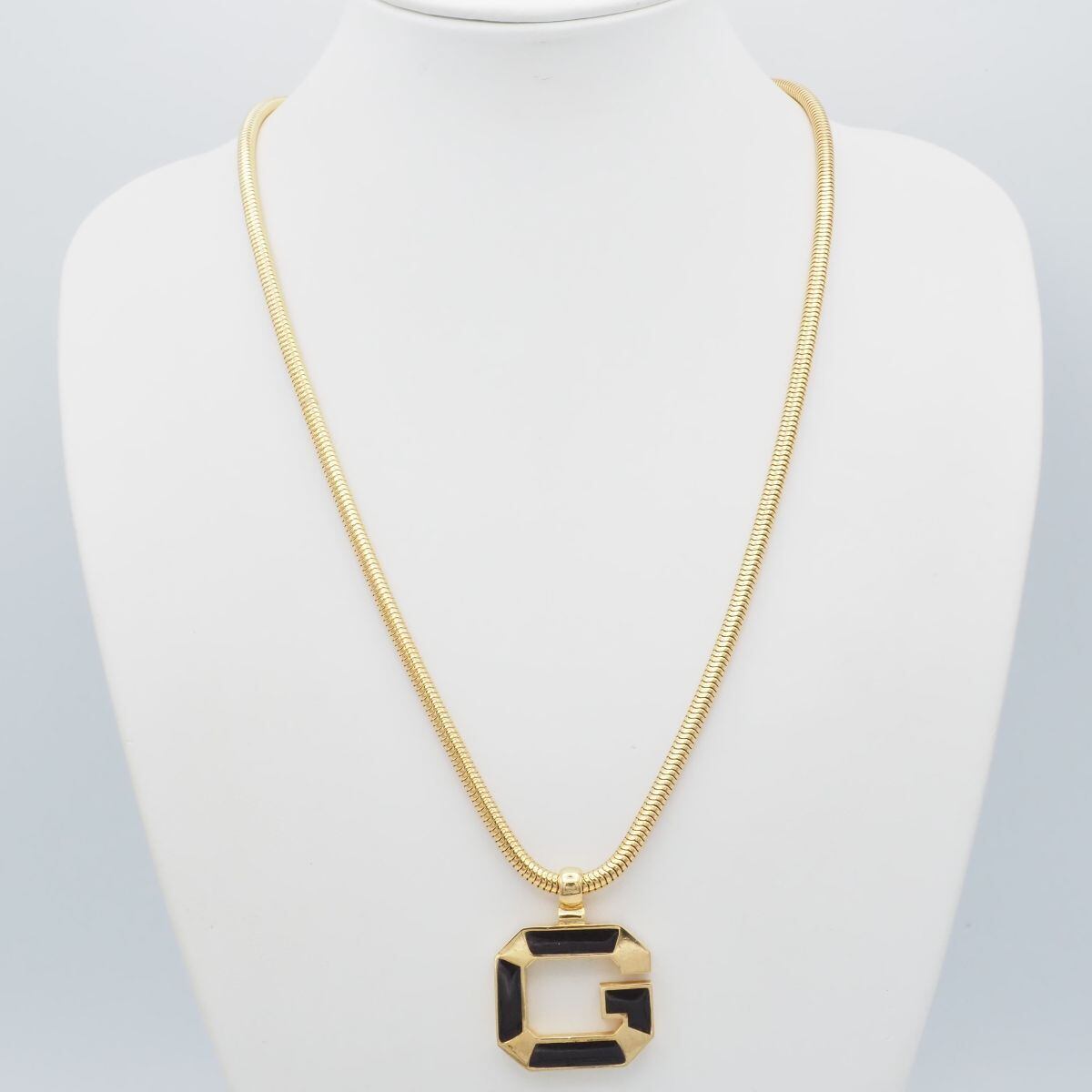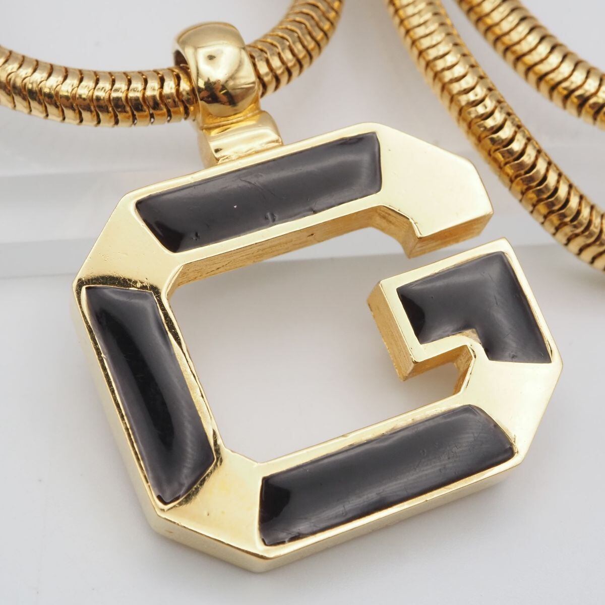F879 ジバンシイ GIVENCHY 1975 PARIS NEW YORK ペンダント ネックレス エナメル G ロゴ ゴールド デザイン