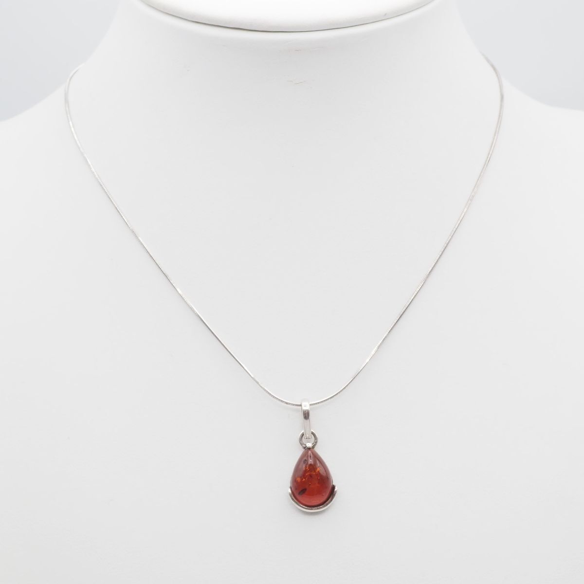 F614 琥珀 コハク アンバー 925刻印 ペンダント ネックレス デザイン シルバー ヴィンテージ
