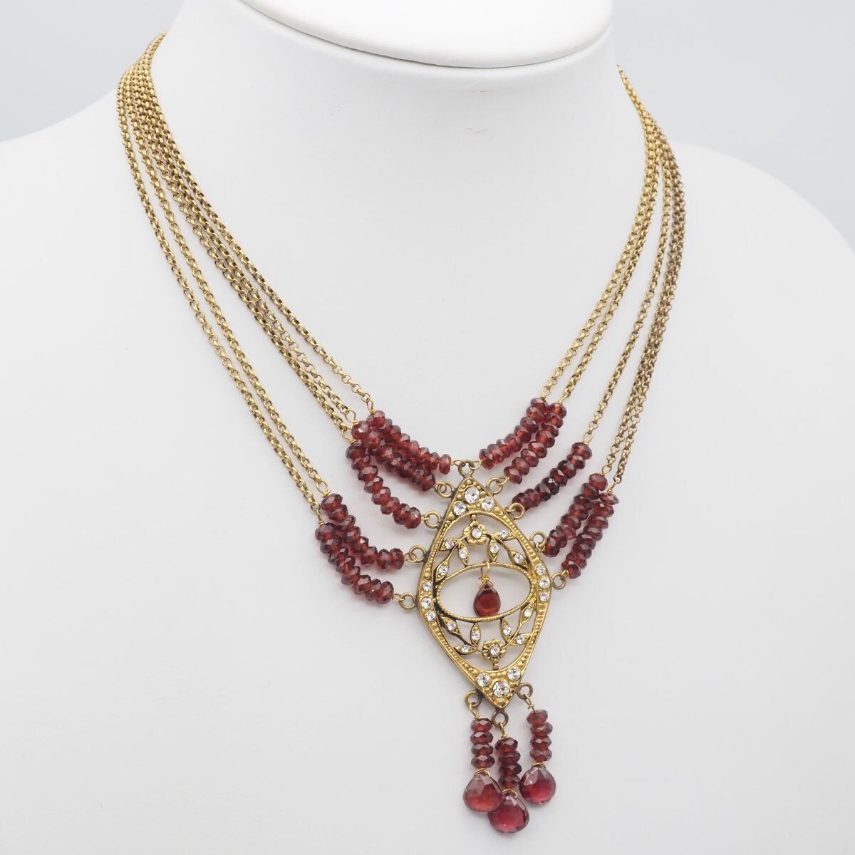 F753 ネックレス ガーネット風 ダイヤモンド風 5連 ゴールド デザイン コスチュームジュエリー