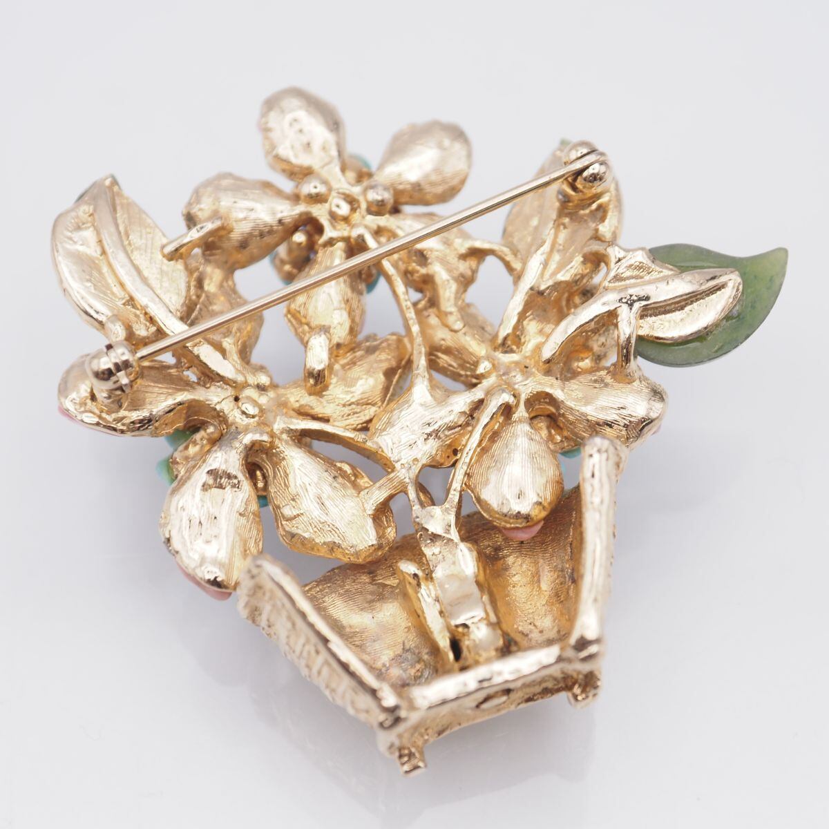 G154 アメジスト ターコイズ トルコ石 等 カラーストーン ブローチ フラワーバスケット ゴールド デザイン コスチュームジュエリー