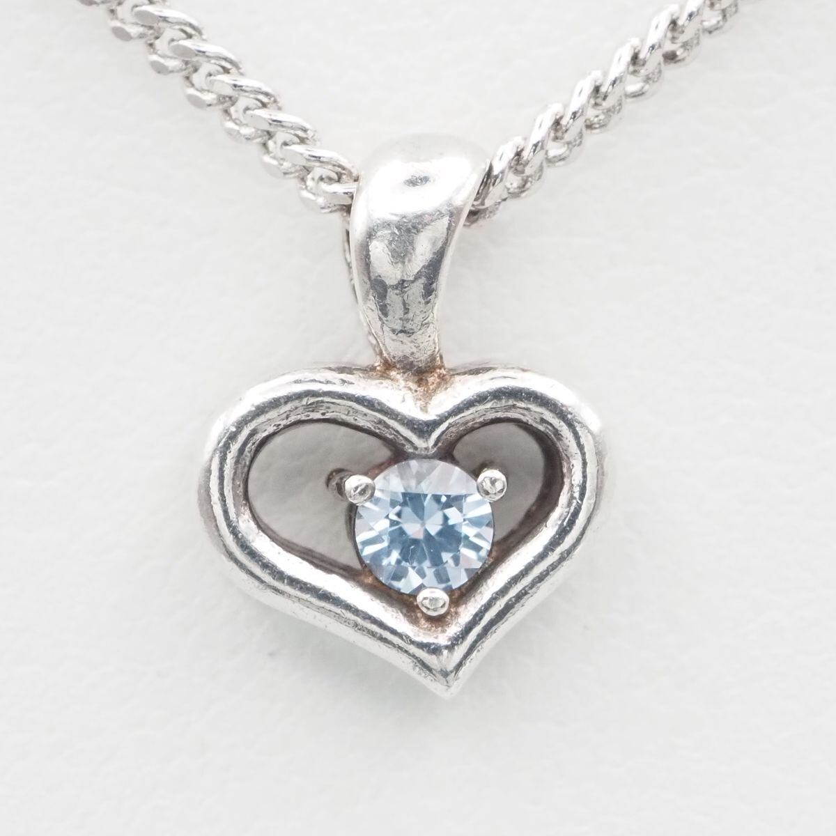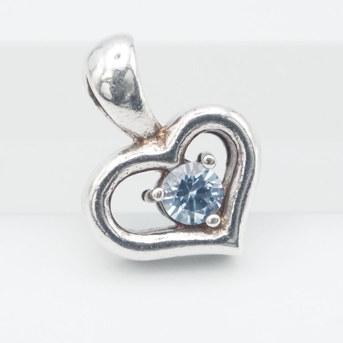 C217 Courreges クレージュ ブルートパーズ SV刻印 ペンダント トップ オープンハート デザイン シルバー チャーム ヘッド 11月誕生石