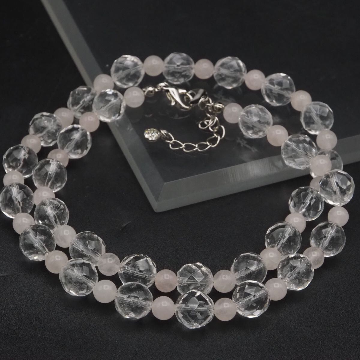 C314 水晶 ローズクォーツ ネックレス デザインカット シルバー