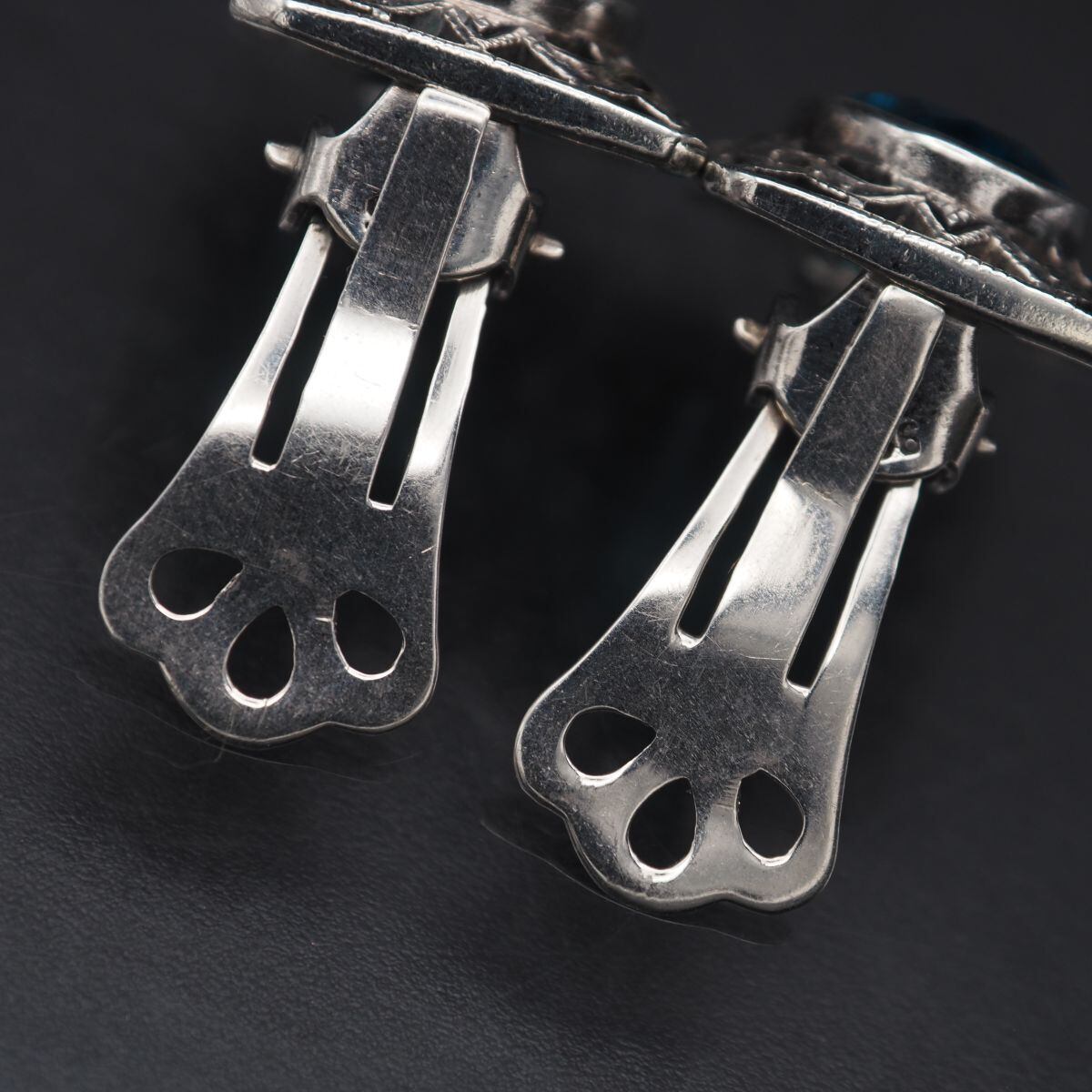 C696 ブルーストーン 925刻印 イヤリング マーカサイト マルカジット 透かし彫り デザイン シルバー