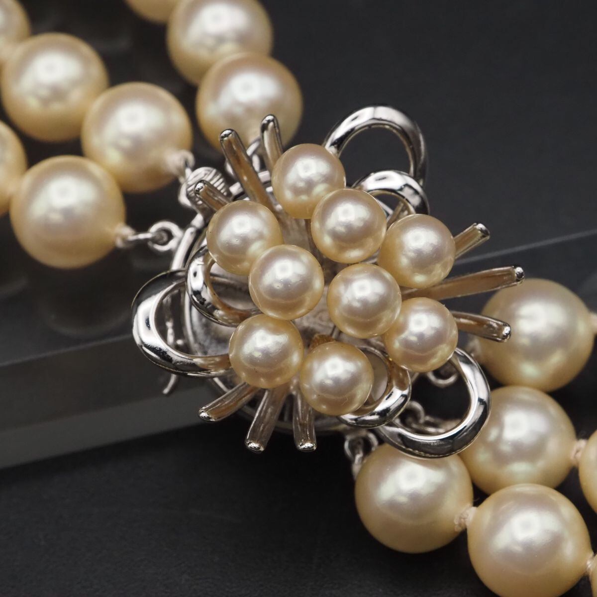 F218 フェイクパール SILVER刻印 ネックレス 3連 デザイン シルバー