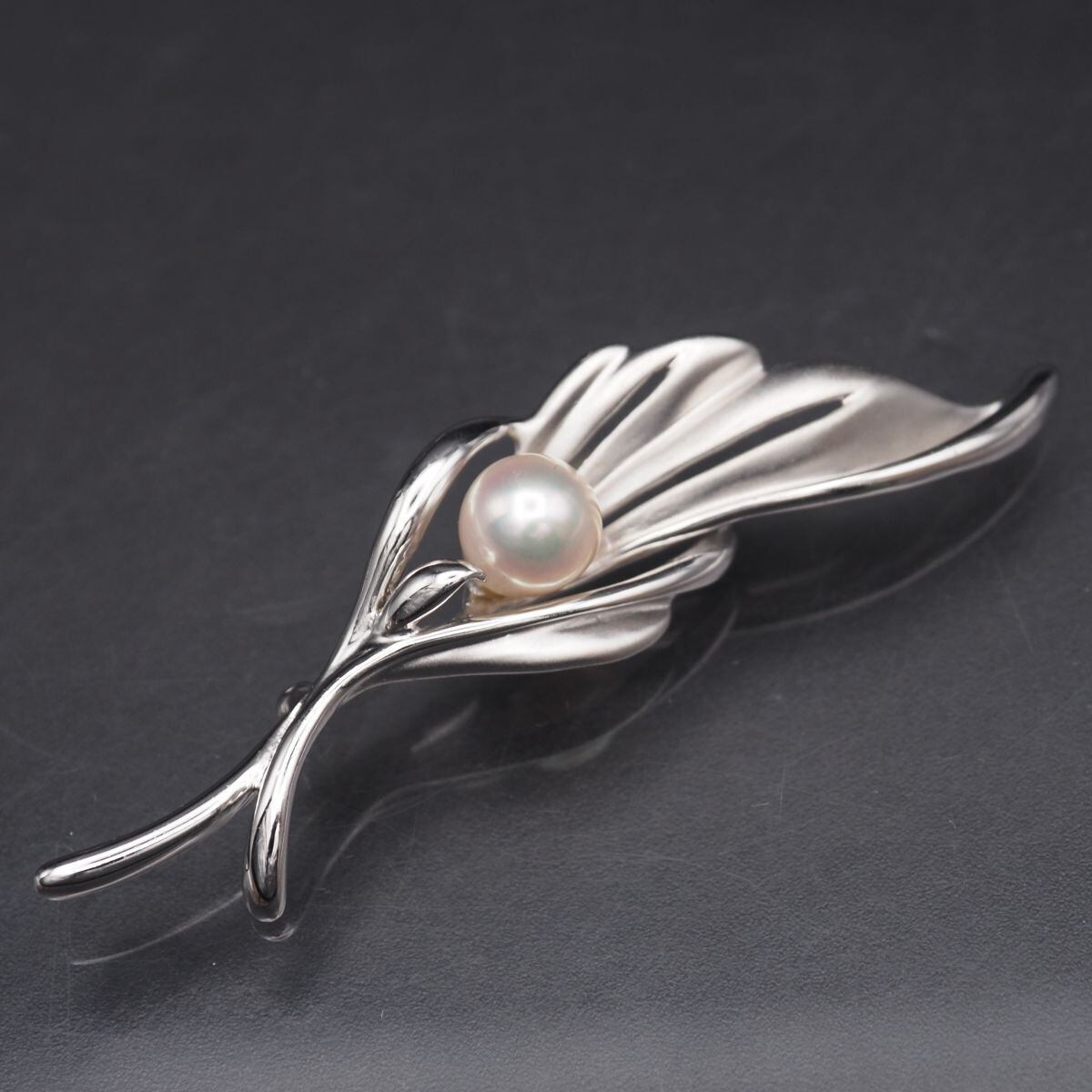 C331 本真珠 8mm珠 パール SILVER刻印 ブローチ デザイン シルバー コサージュ 6月誕生石