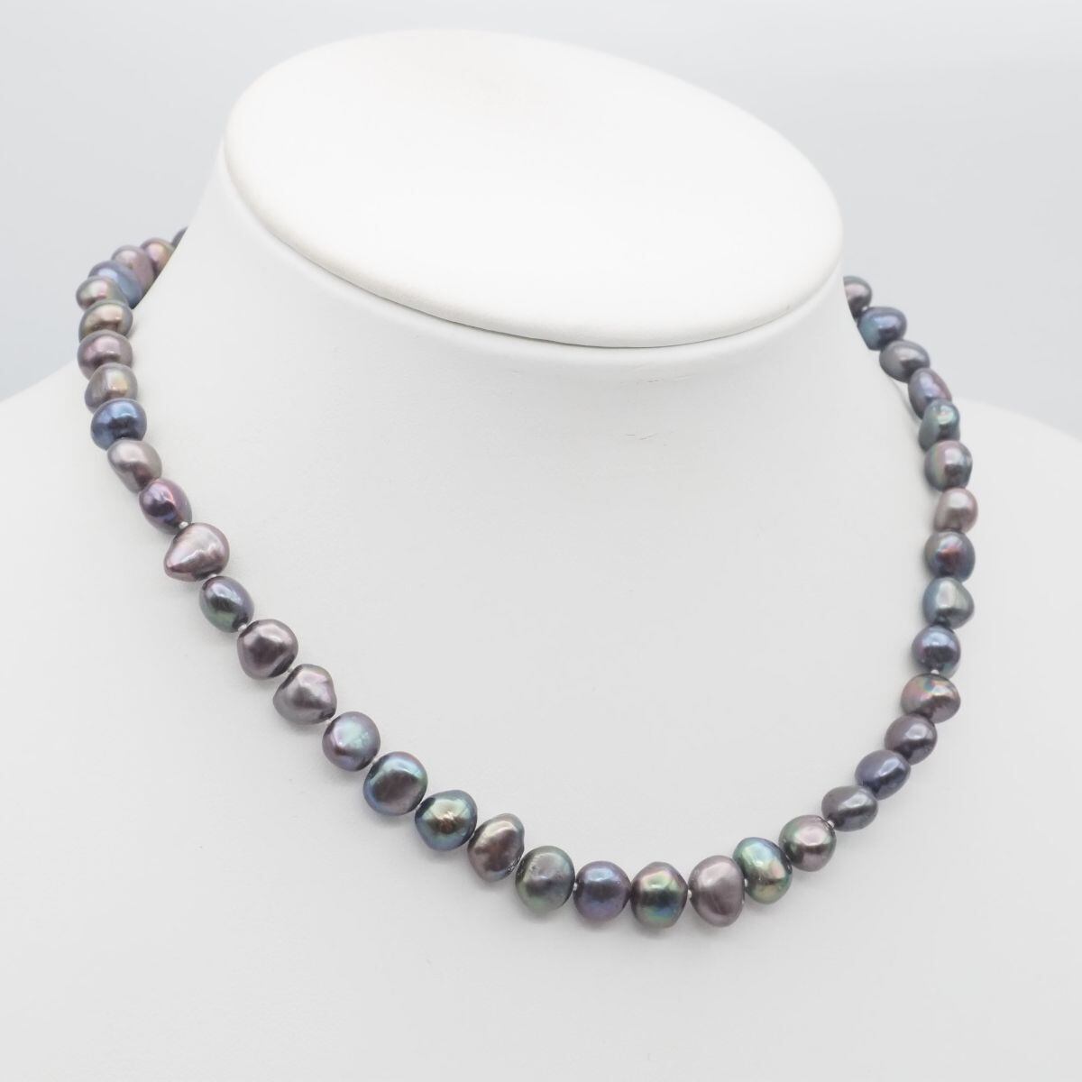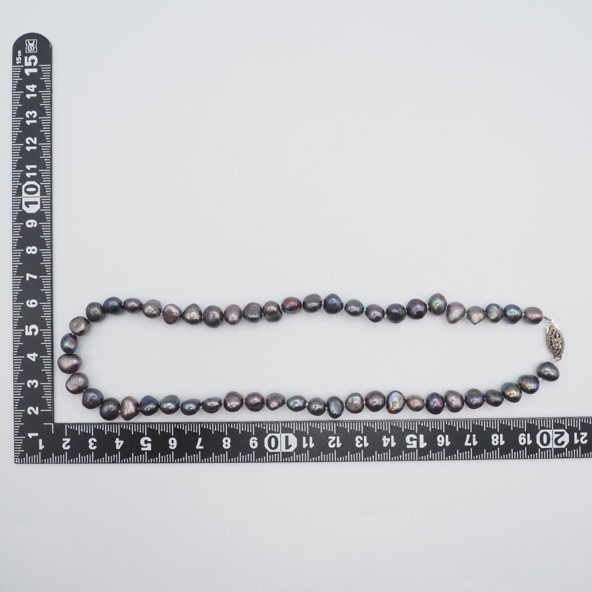 F131 淡水真珠 パール STERLING刻印 ネックレス ピーコック系カラー デザイン シルバー 6月誕生石