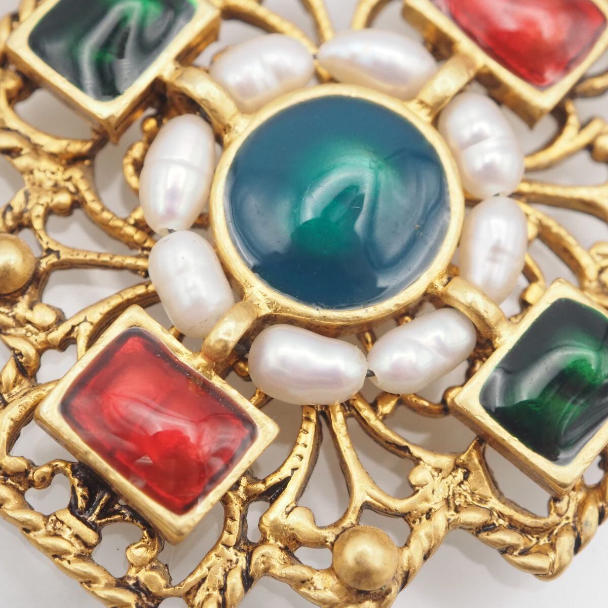 F076 ANNE KLEIN アンクライン MADE IN JAPAN刻印 ペンダント ネックレス 淡水真珠 パール グリーン レッド エナメル ゴールド デザイン