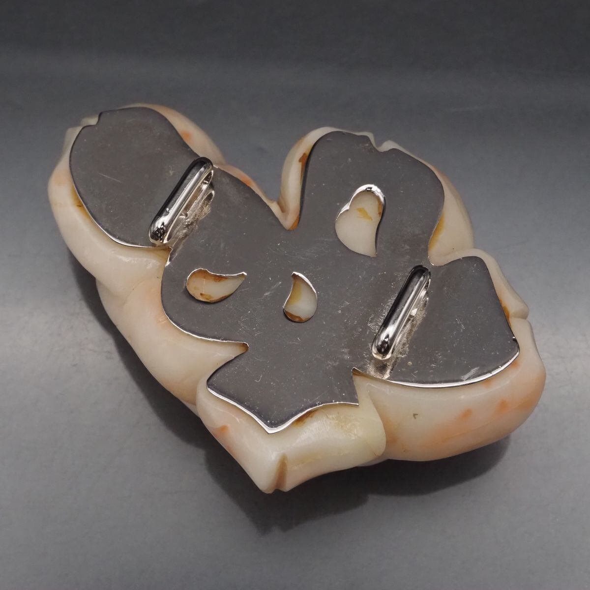 F069 珊瑚 サンゴ 帯留め 花彫刻 裏細工 デザイン シルバー 和装小物 ヴィンテージ 3月誕生石