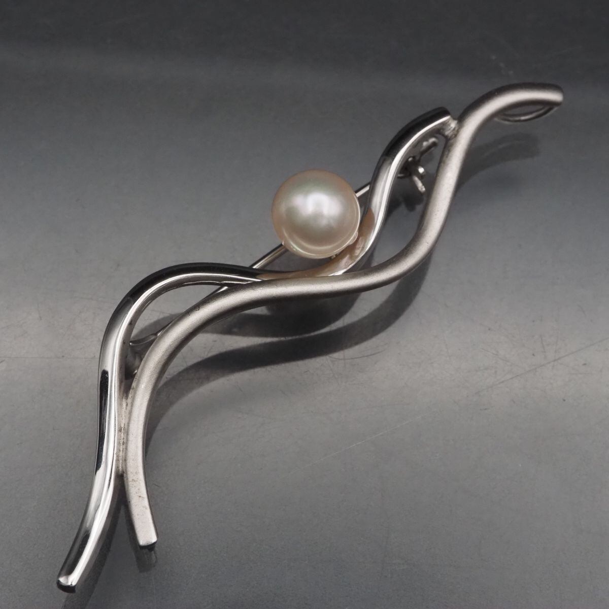 F084 本真珠 8mm珠 パール SILVER刻印 ブローチ デザイン シルバー コサージュ 6月誕生石