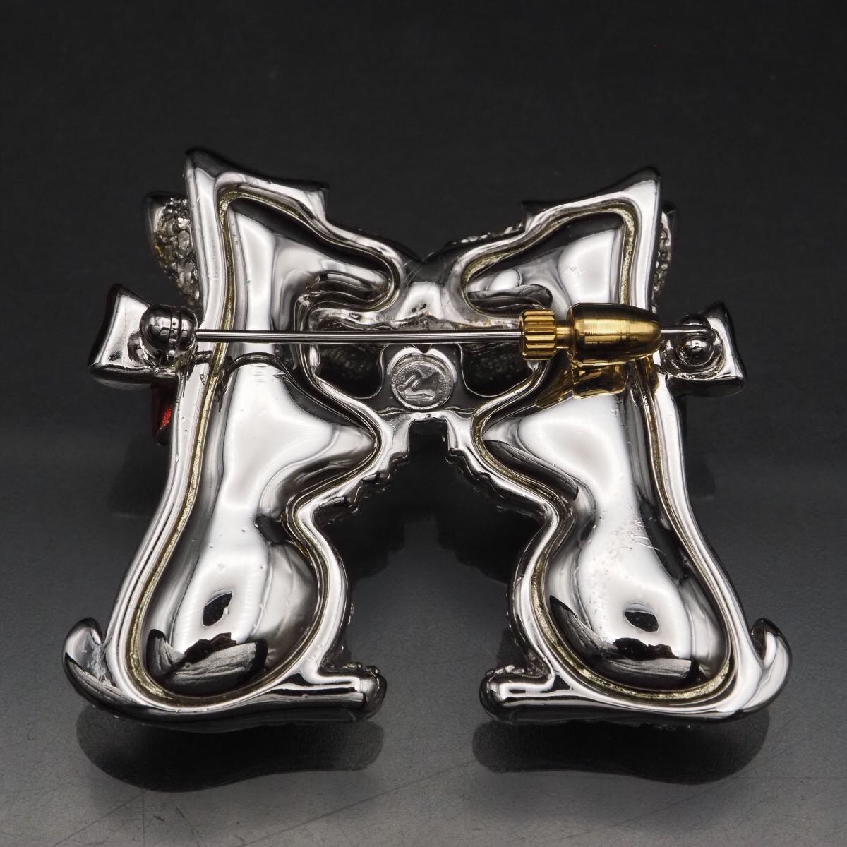 F341 スワロフスキー SWAROVSKI ブローチ ラインストーン パヴェ 犬 ドッグ スコティッシュテリア ブラック レッド エナメル デザイン