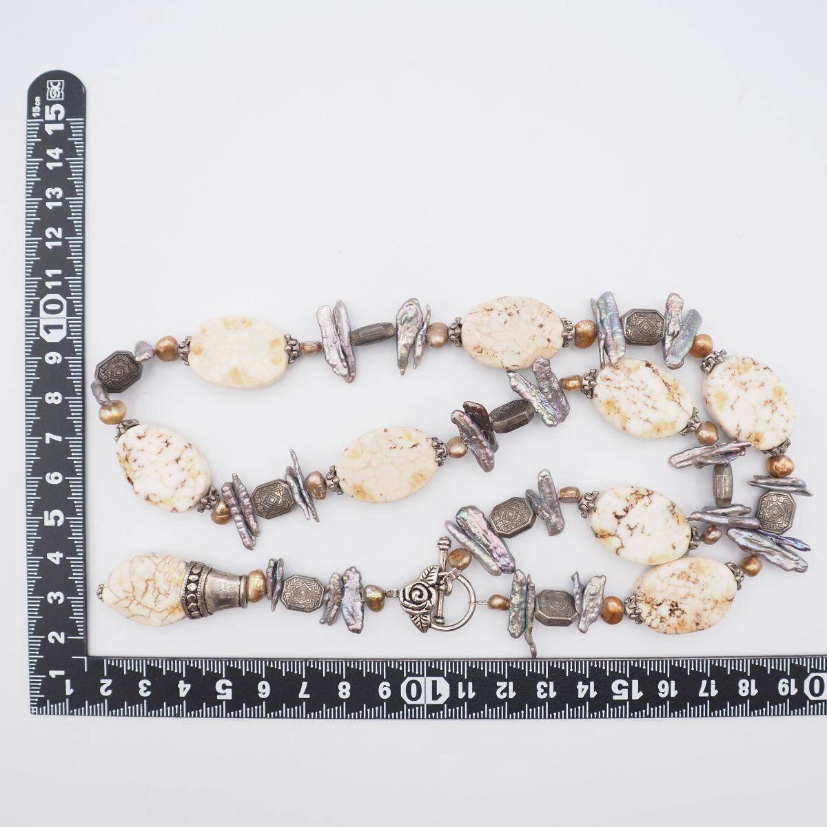 F511 天然石 バロックパール 真珠 ネックレス ミックスカラー デザイン シルバー アンティーク 6月誕生石