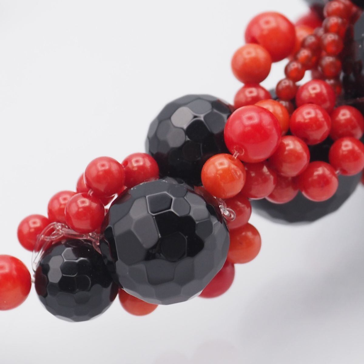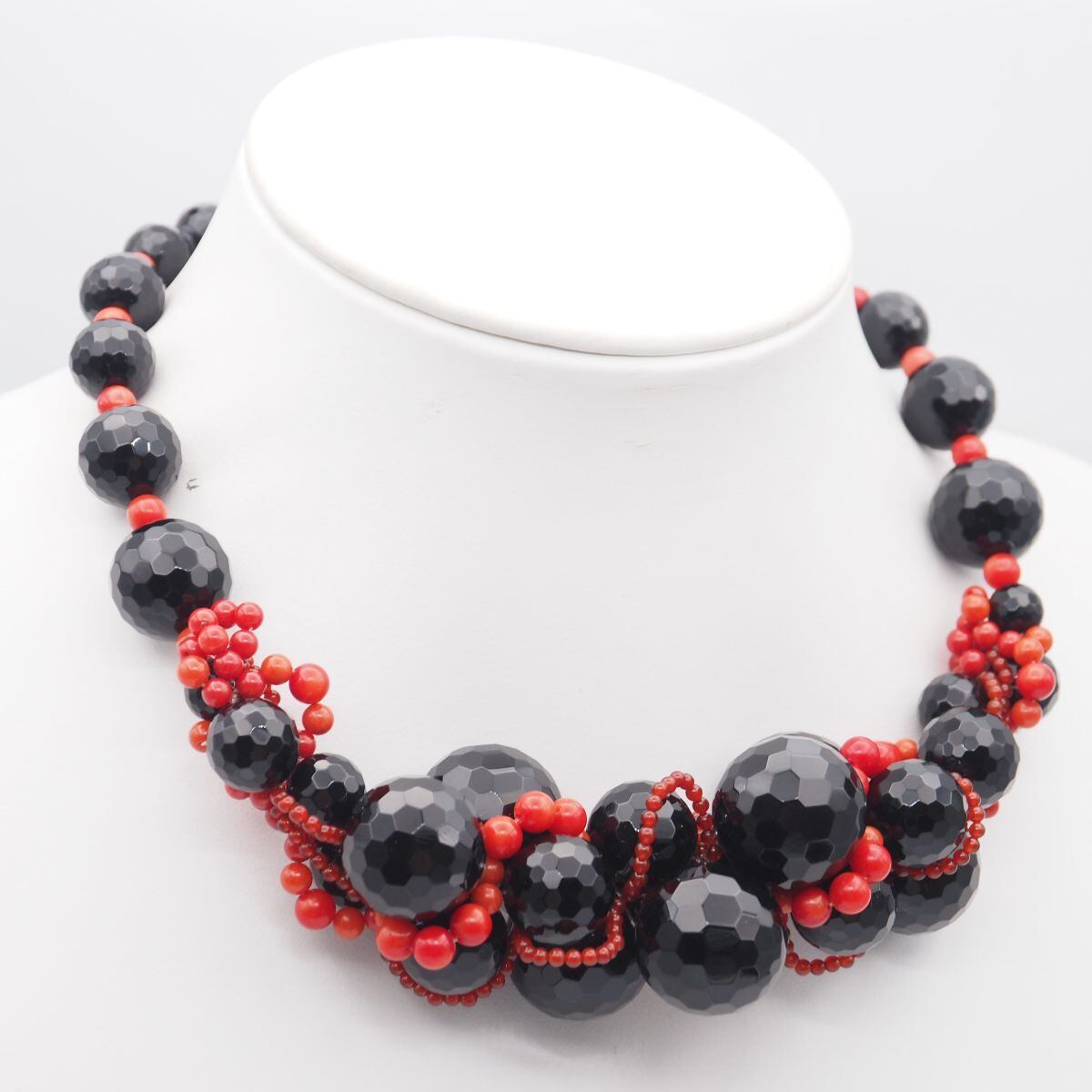 F540 大ぶり オニキス 赤珊瑚 サンゴ ネックレス レッドアゲート 赤瑪瑙 メノウ デザイン シルバー 3月誕生石
