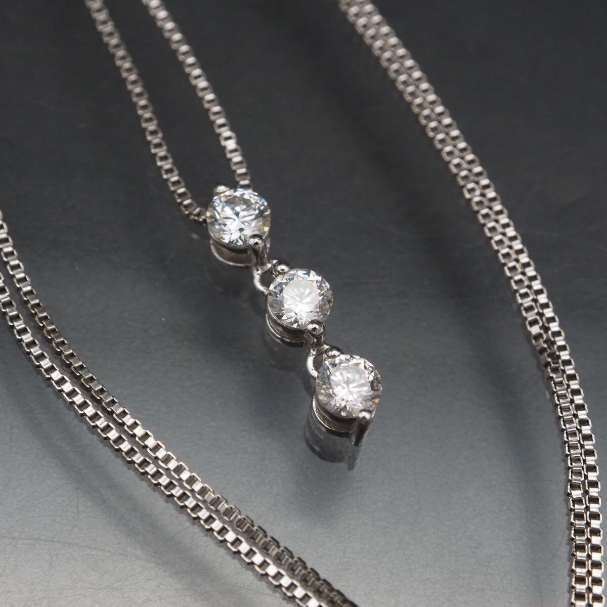 F607 ダイヤモンド風 S925刻印 ペンダント ネックレス 3連 デザイン シルバー アジャスター付き