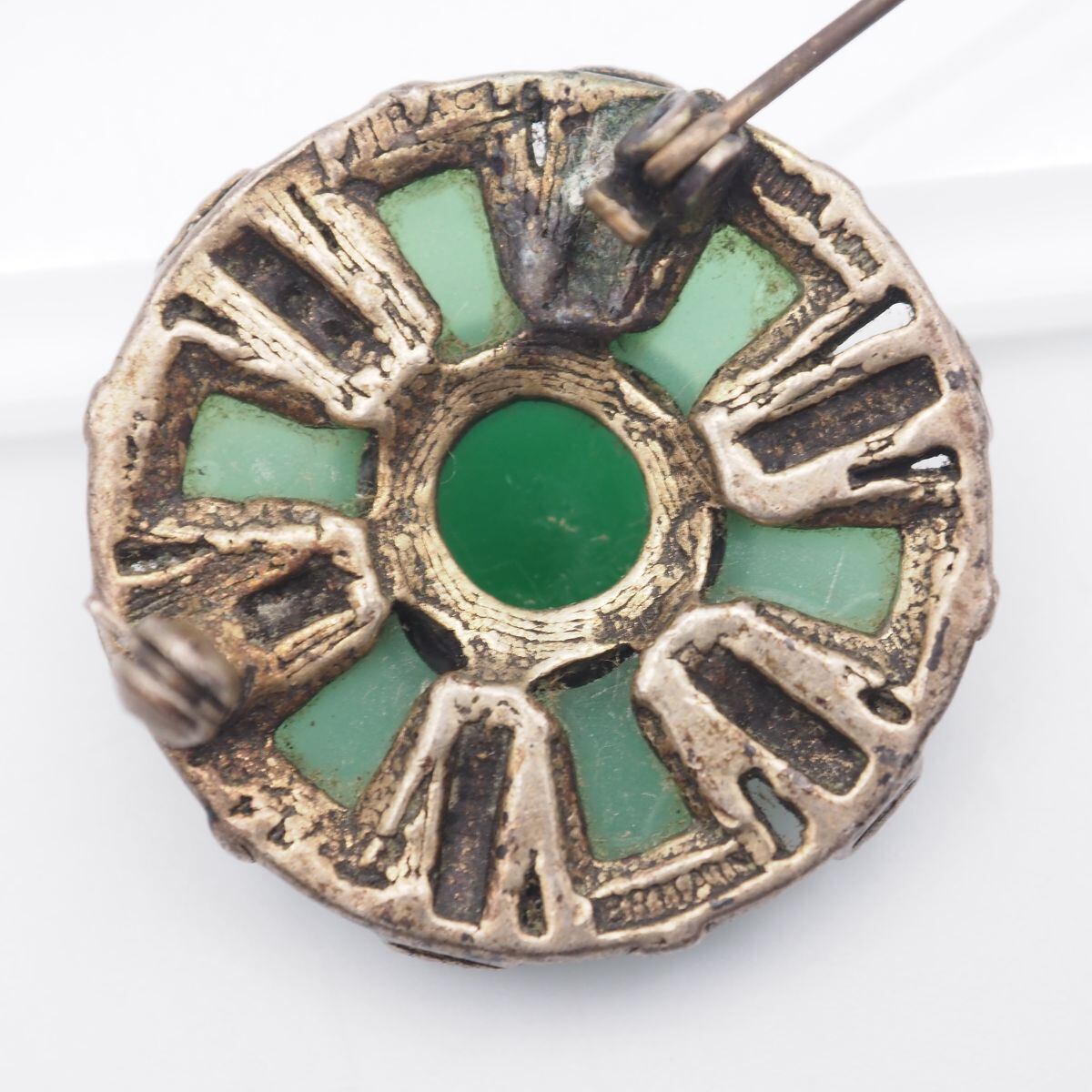 F671 イギリス ヴィンテージ MIRACLE ミラクル BRITAIN刻印 ブローチ 天然石風 ゴールド デザイン 英国 アンティーク