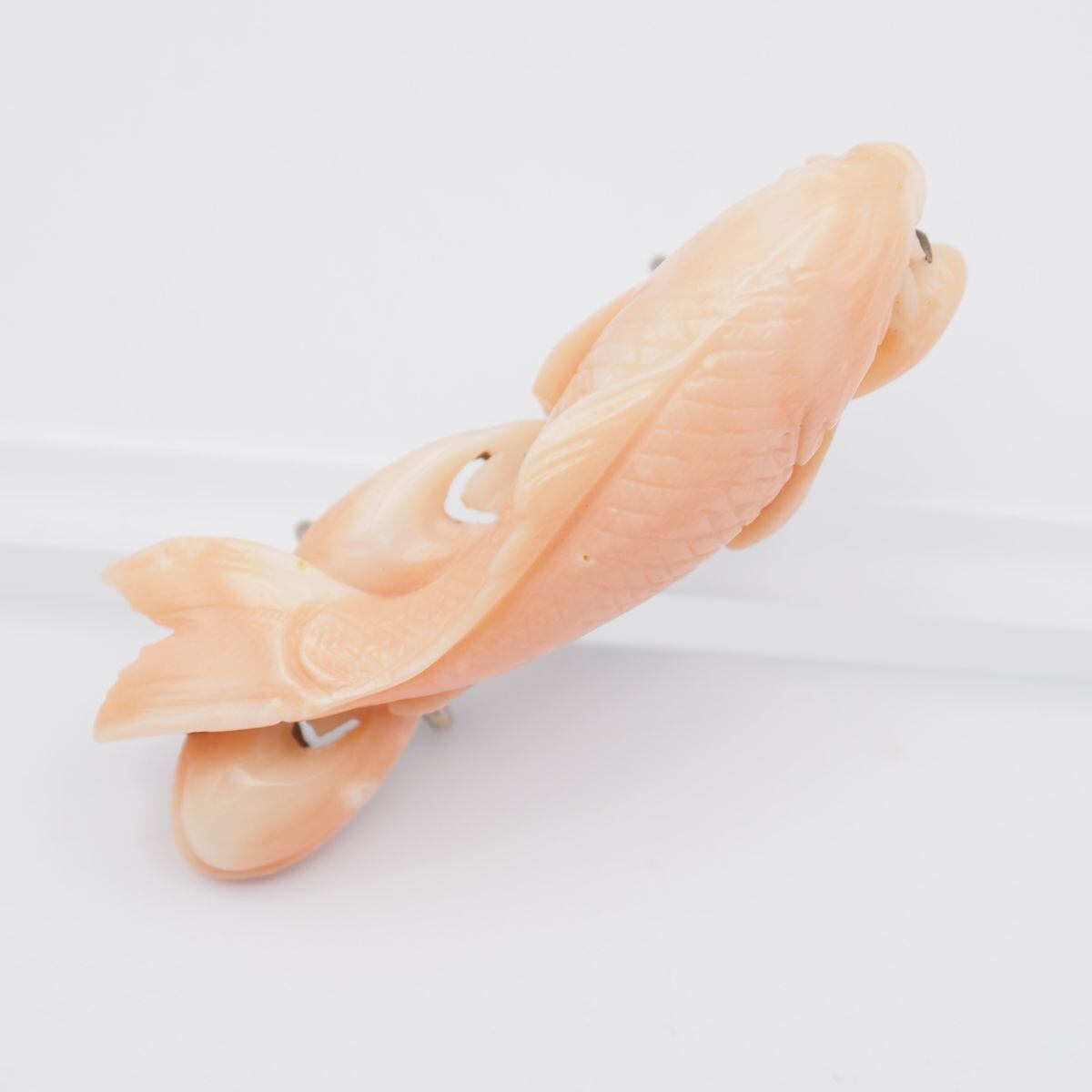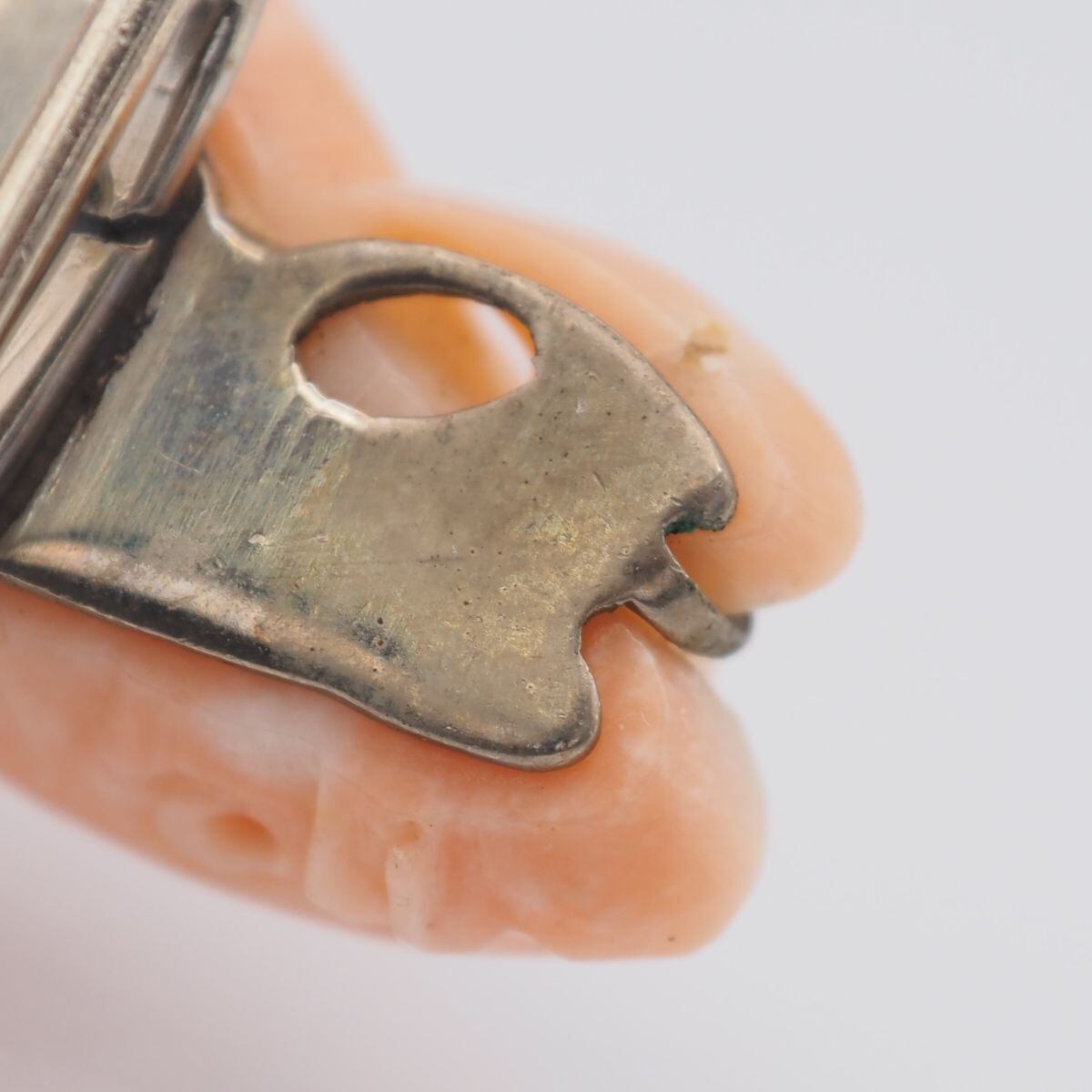 F674 珊瑚 サンゴ 帯留め 鯉彫刻 デザイン シルバー 和装小物 3月誕生石