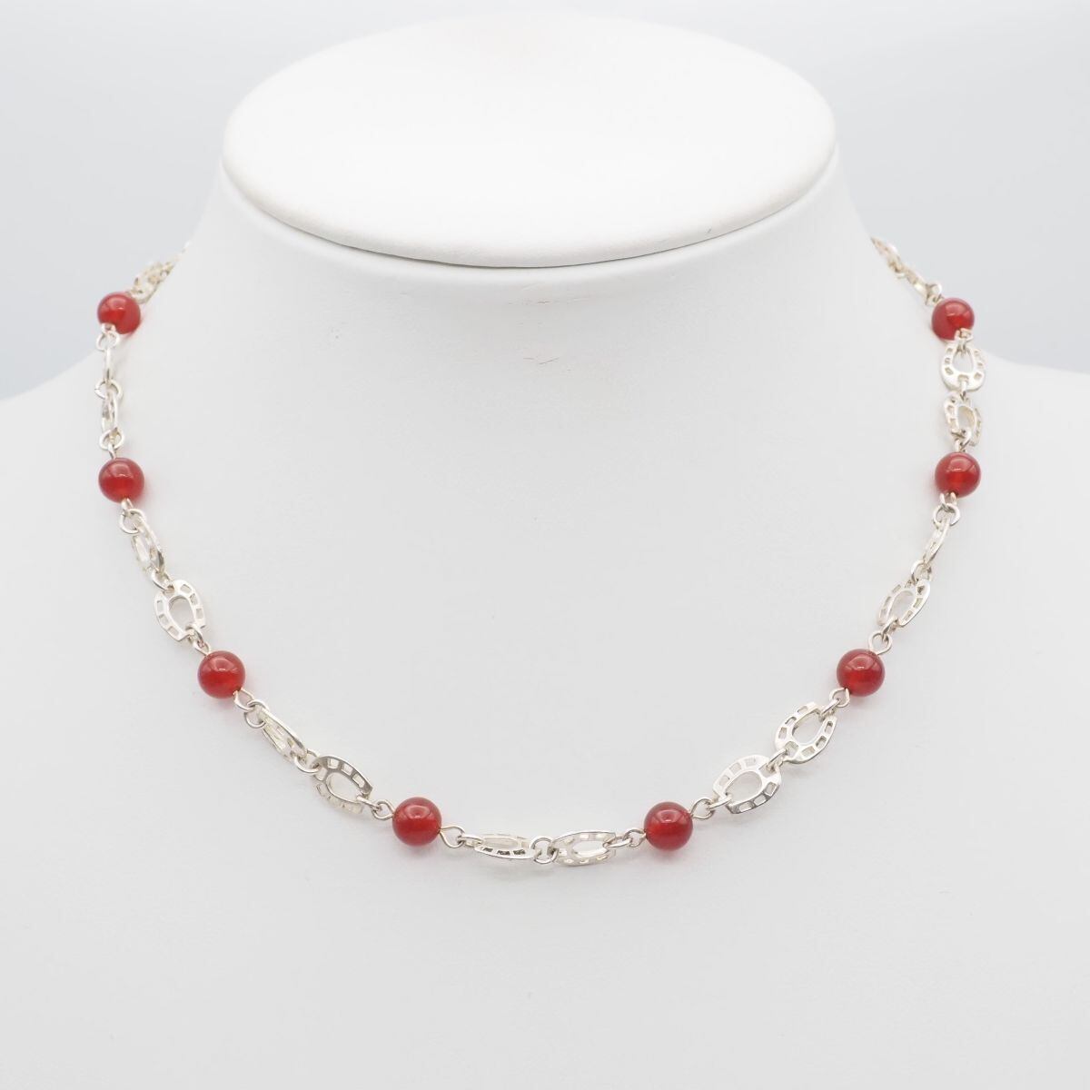 F623 レッドアゲート 赤瑪瑙 メノウ 925 SPAIN刻印 ネックレス 蹄鉄 馬蹄 ホースシュー デザイン シルバー