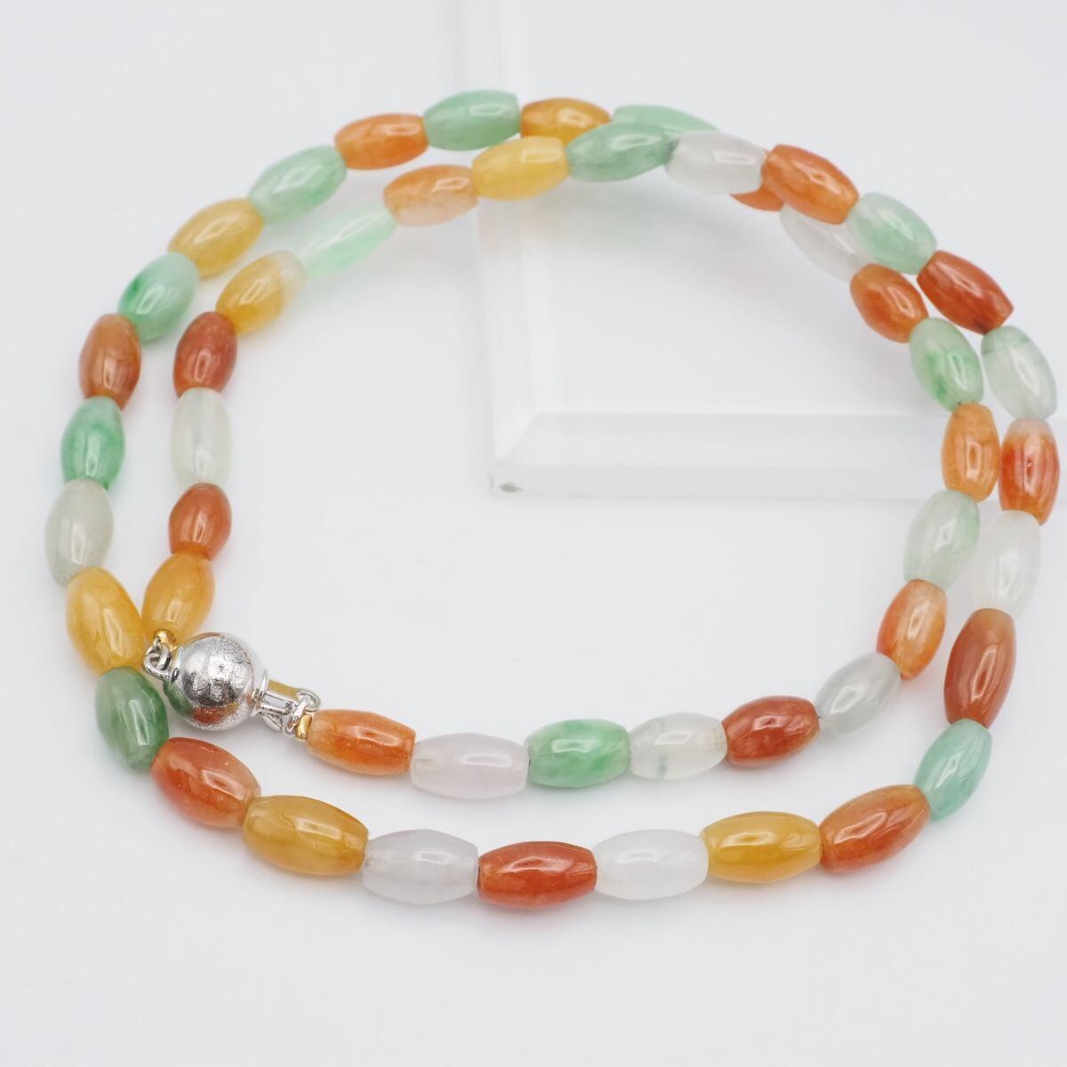 F795 翡翠? ヒスイ? SV刻印 カラーストーン ネックレス マルチカラー デザイン シルバー