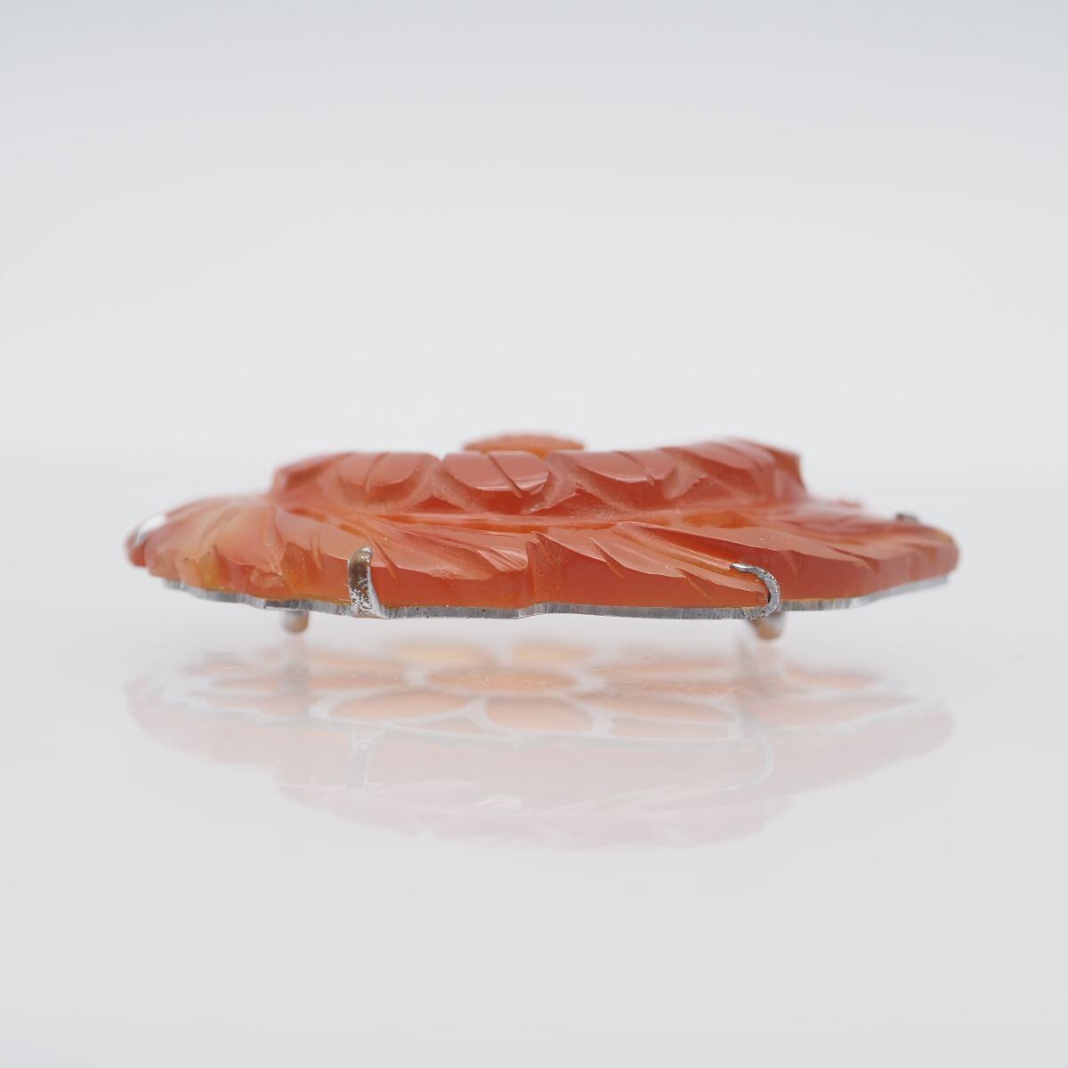 C089 レッドアゲート 赤瑪瑙 メノウ 帯留め 花彫刻 裏細工 デザイン シルバー 和装小物 ヴィンテージ