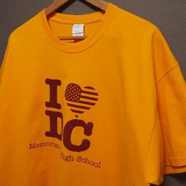 T023 PORT and COMPANY I ラブDC ロゴ コットン Tシャツ XLサイズ イエロー系カラー 古着 アメリカ 輸入 ポートアンドカンパニー