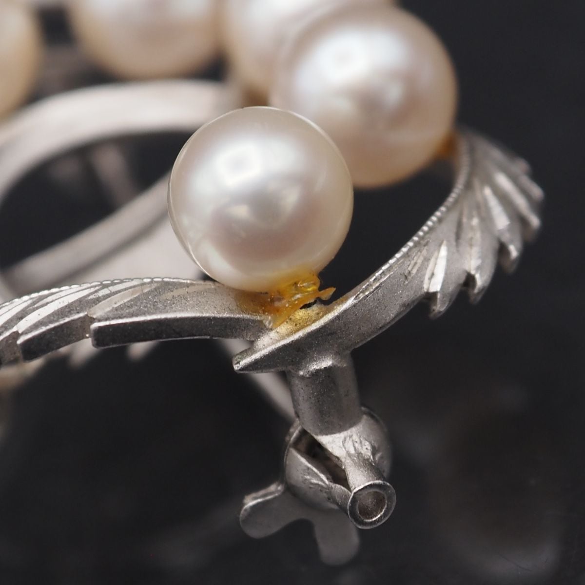 C746 本真珠 6.1mm6珠 パール SILVER刻印 ブローチ リーフ デザイン シルバー コサージュ 6月誕生石