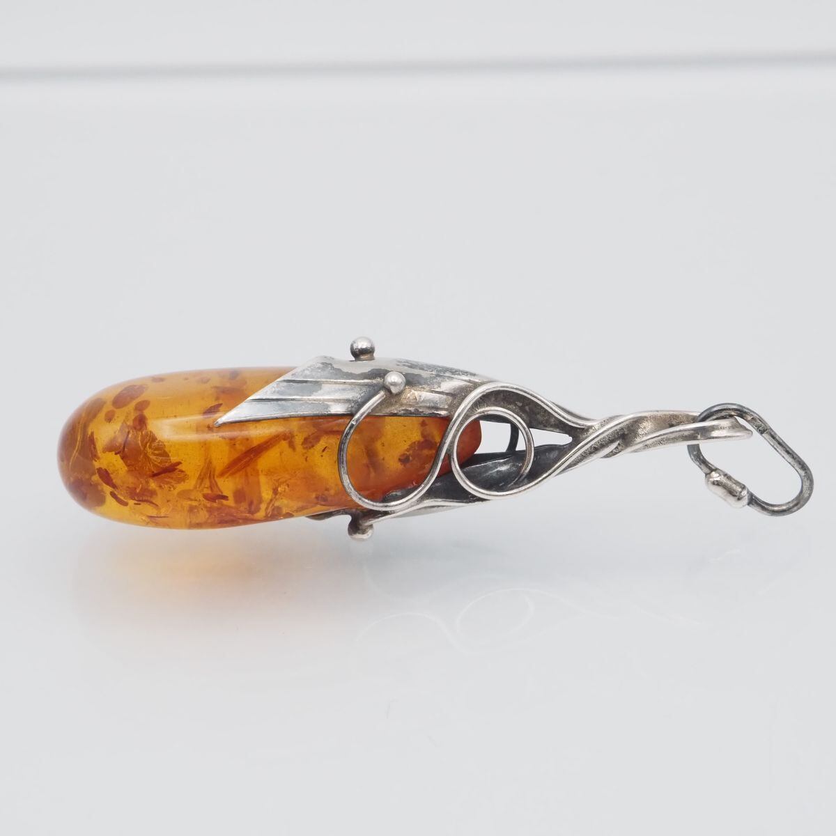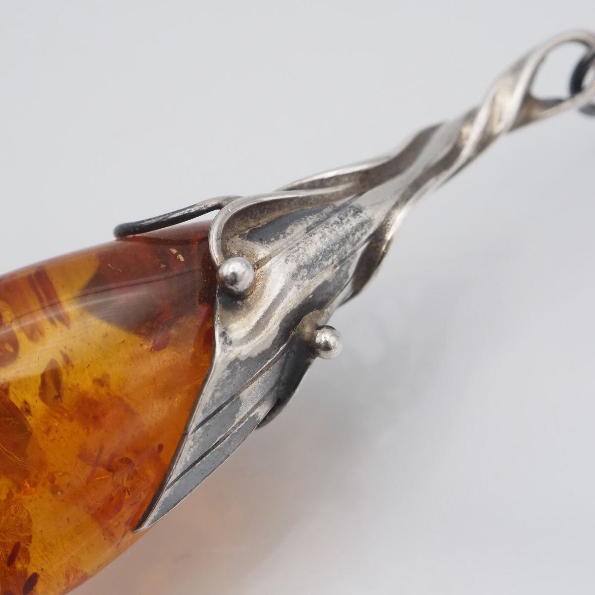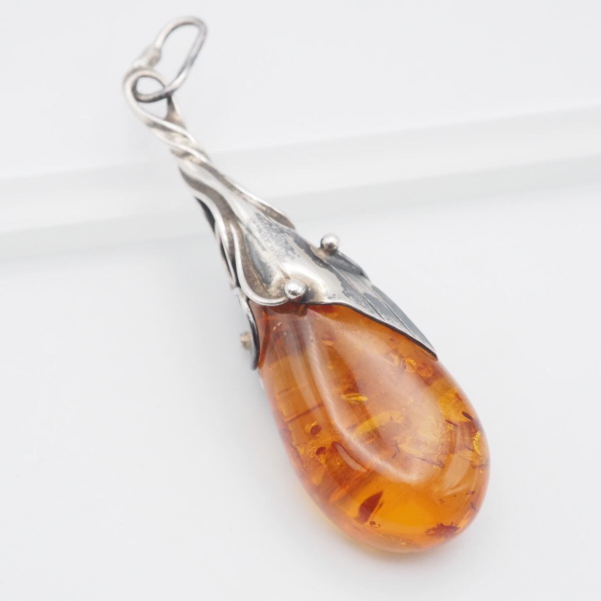 C734 琥珀 コハク アンバー 925刻印 ペンダント トップ デザイン シルバー チャーム ヘッド ヴィンテージ