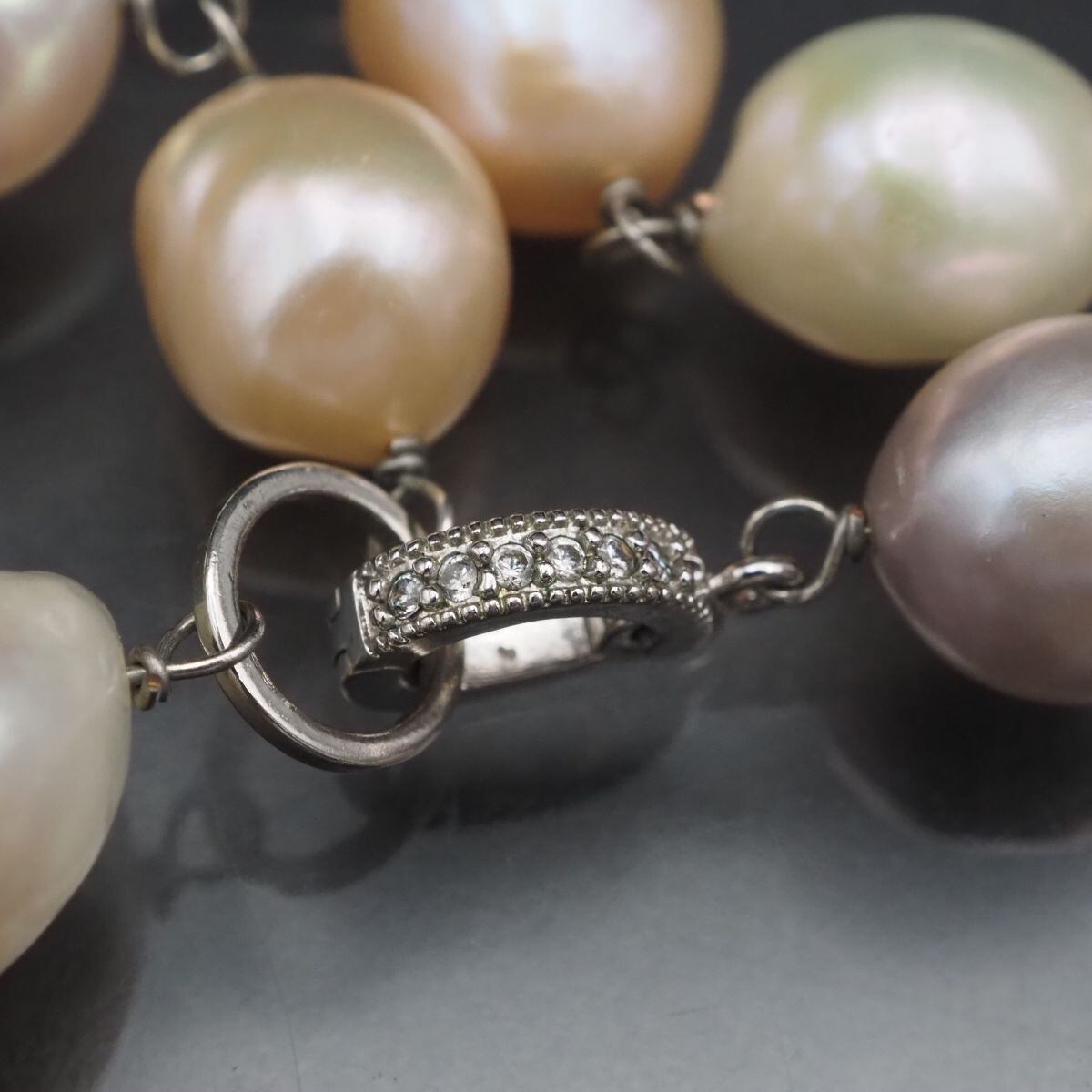 C445 淡水真珠 パール ネックレス マルチカラー デザイン シルバー 6月誕生石