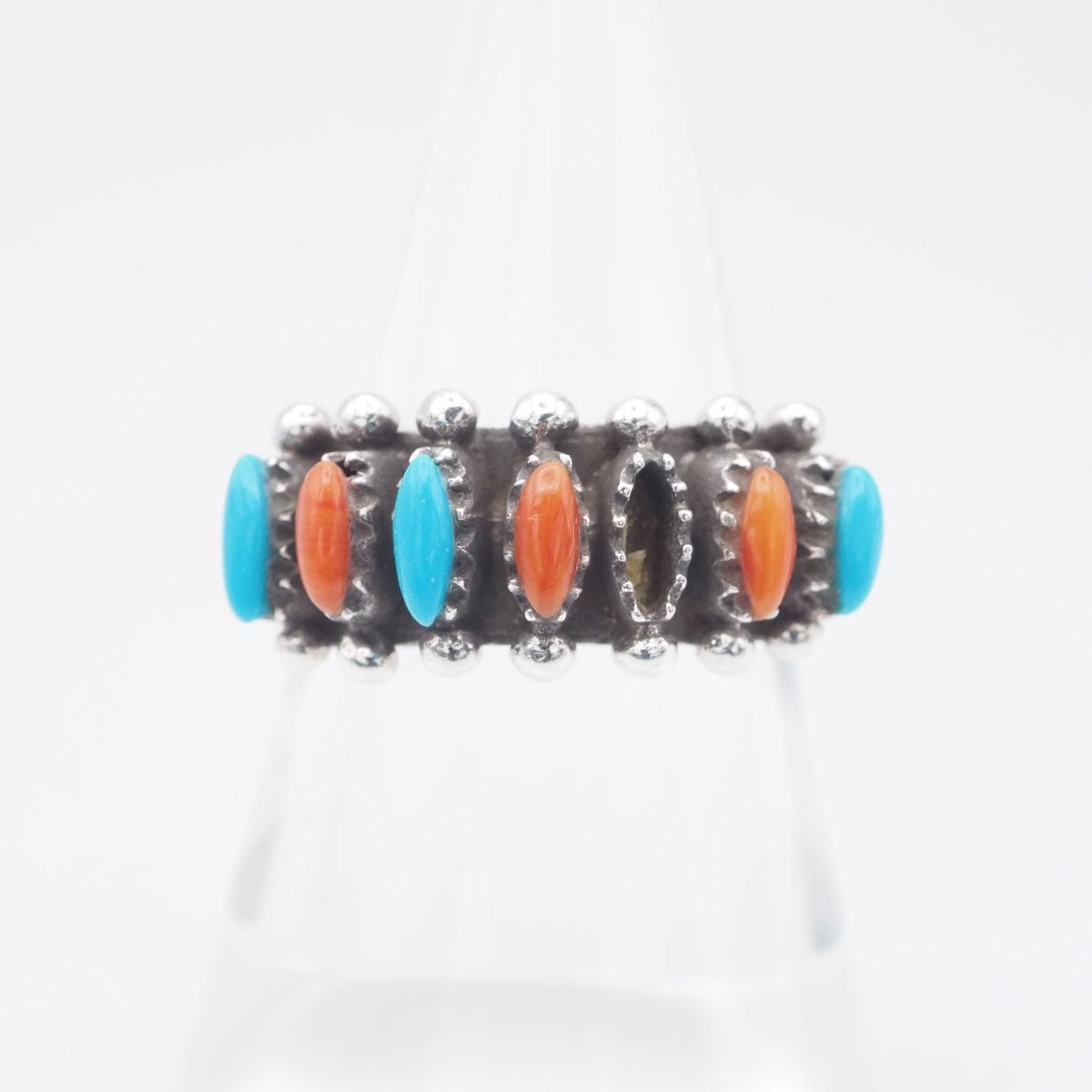 C866 ターコイズ トルコ石 赤珊瑚 サンゴ 925刻印 リング デザイン シルバー 指輪 ヴィンテージ 3月 12月誕生石 13号