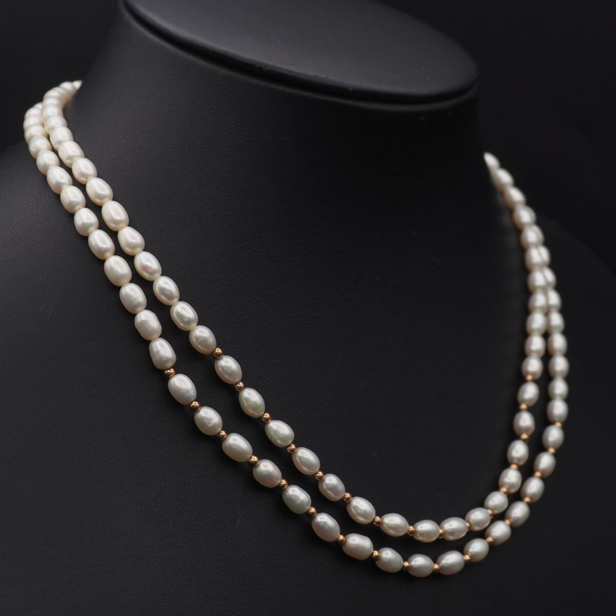 G221 淡水真珠 パール SILVER刻印 ネックレス 2連 デザイン 6月誕生石