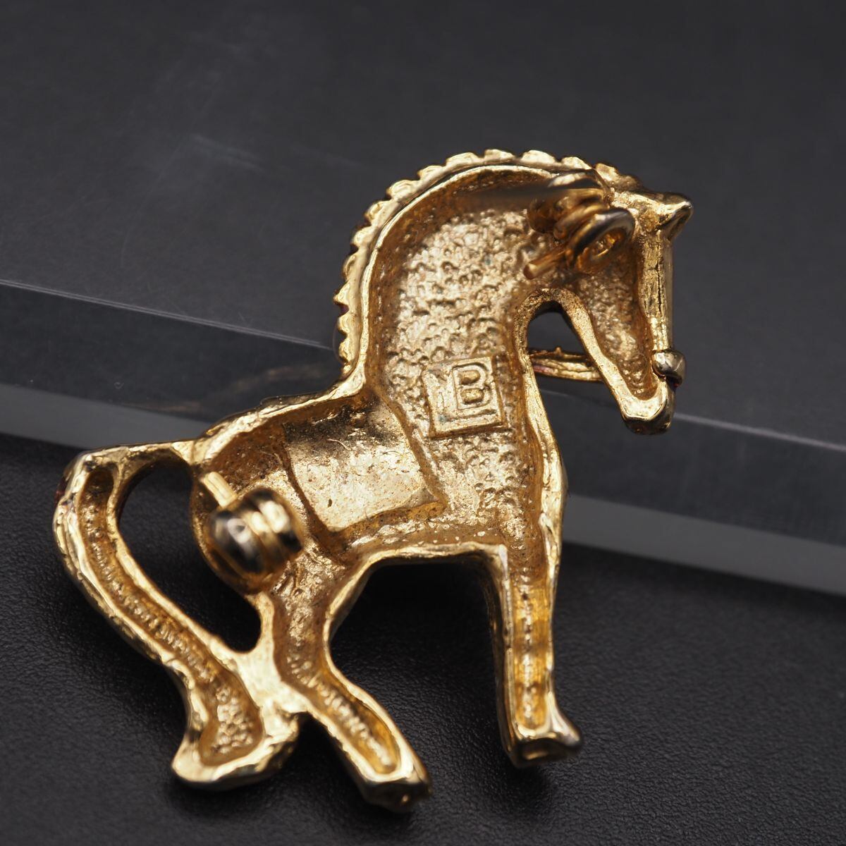 G394 LB?刻印 ブローチ 馬 ホース パープルエナメル ゴールド デザイン コスチュームジュエリー