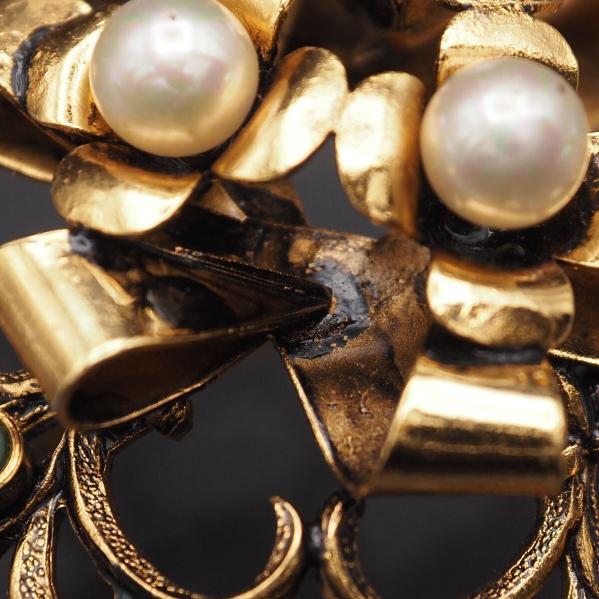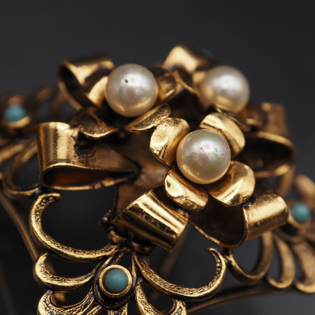 G379 ブローチ フェイクパール ターコイズ風 ゴールド デザイン コスチュームジュエリー