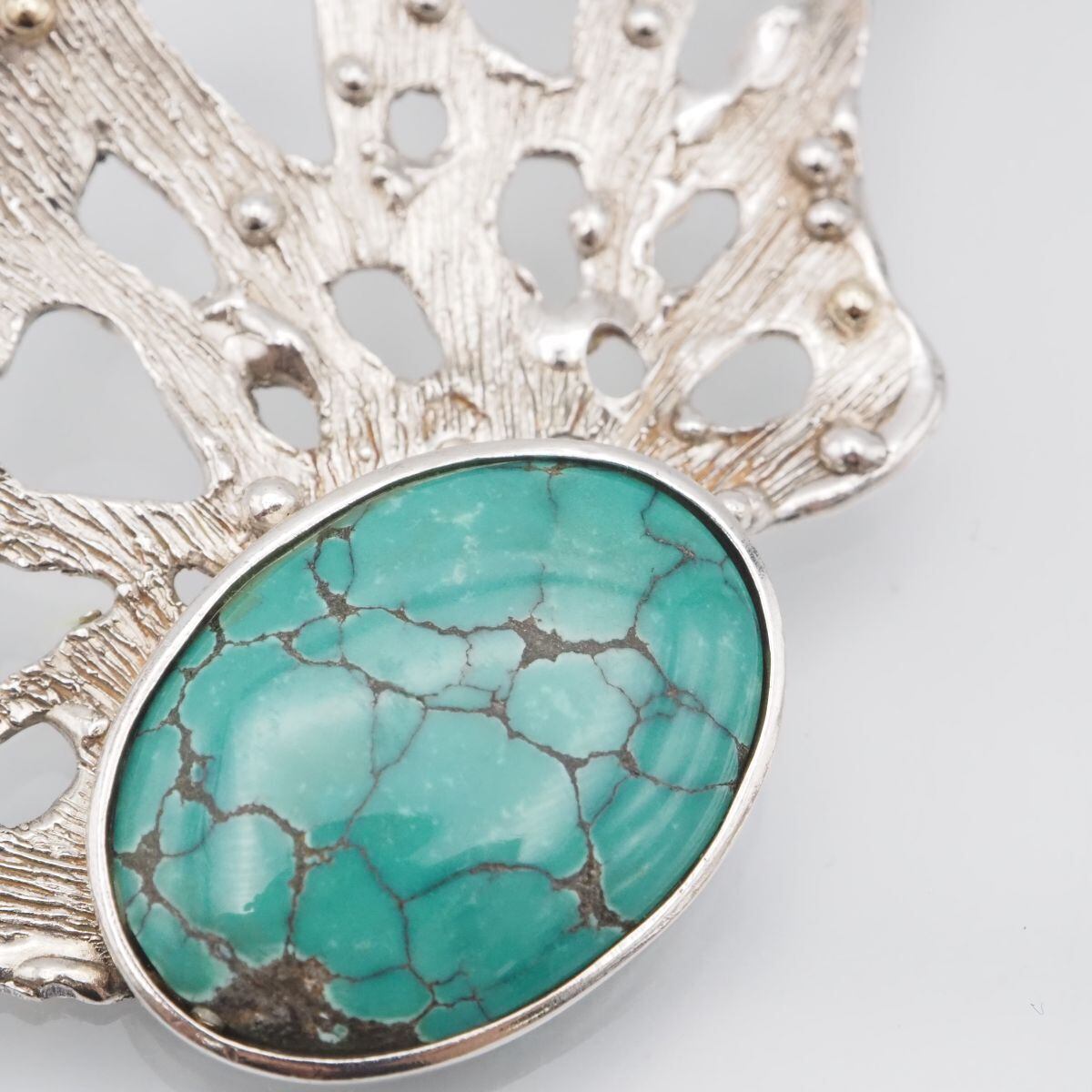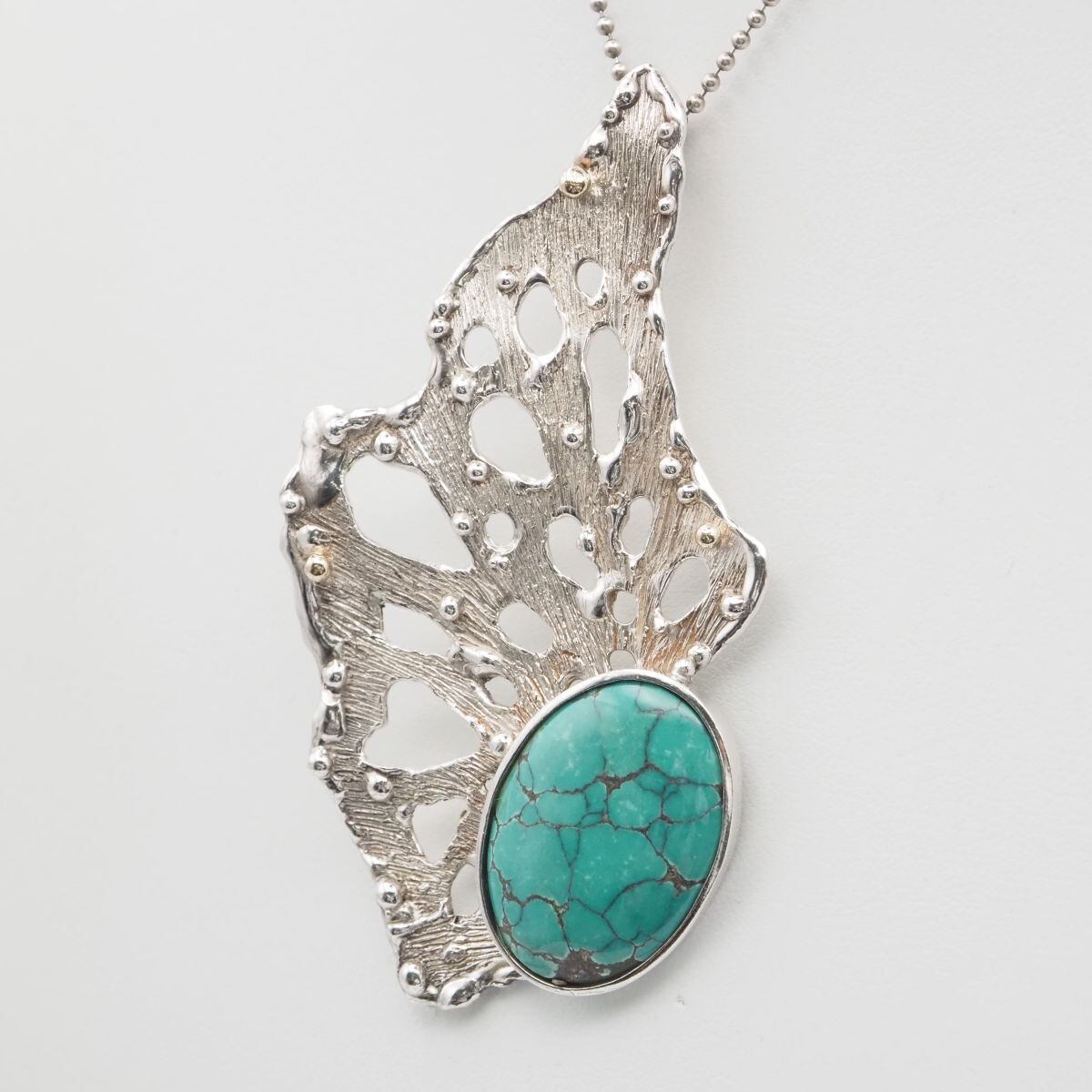G093 ターコイズ トルコ石 K18 SILVER 悠刻印 ペンダント トップ 大ぶり デザイン シルバー×ゴールド コンビ チャーム ヘッド 12月誕生石