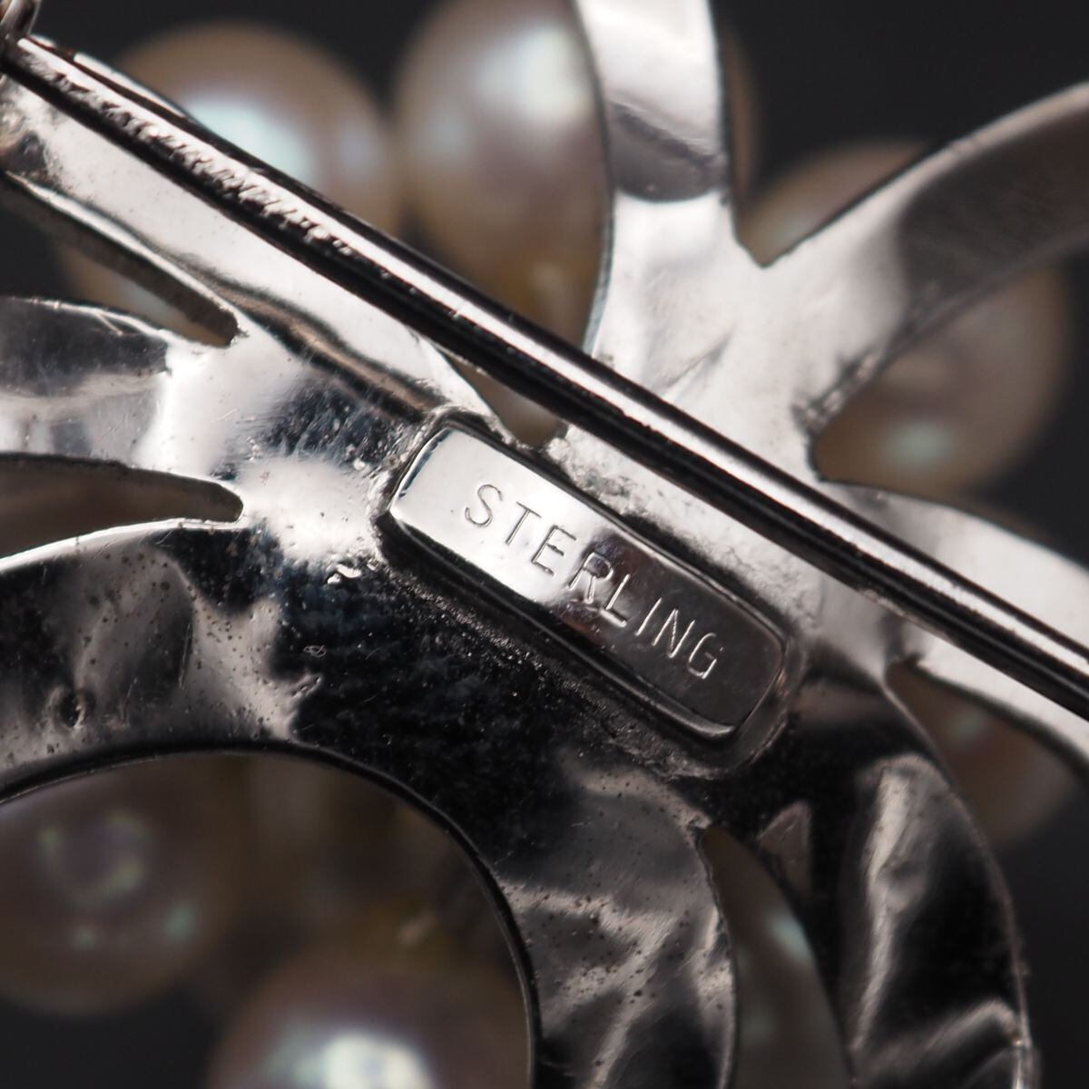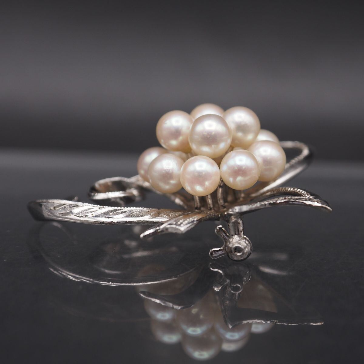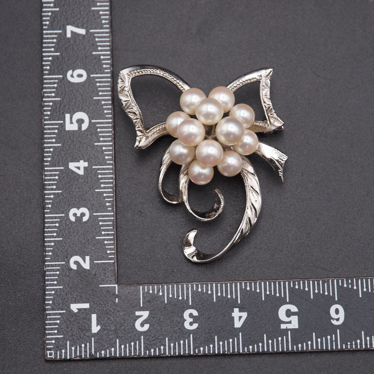 C316 本真珠 5.5mm12珠 パール STERLING刻印 ブローチ リボン デザイン シルバー コサージュ 6月誕生石