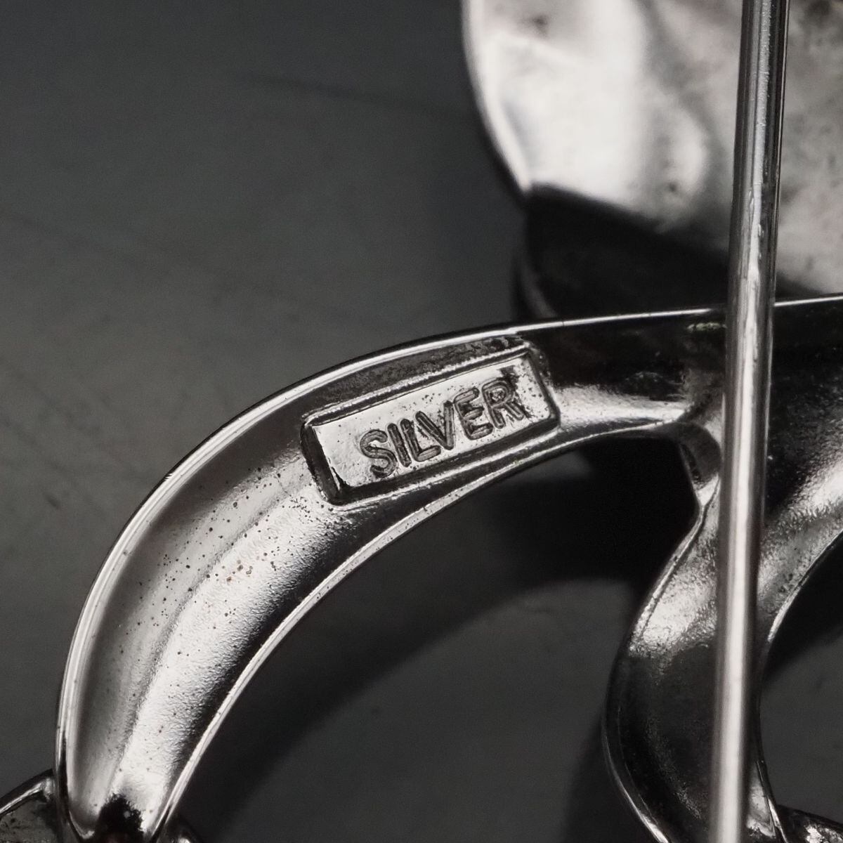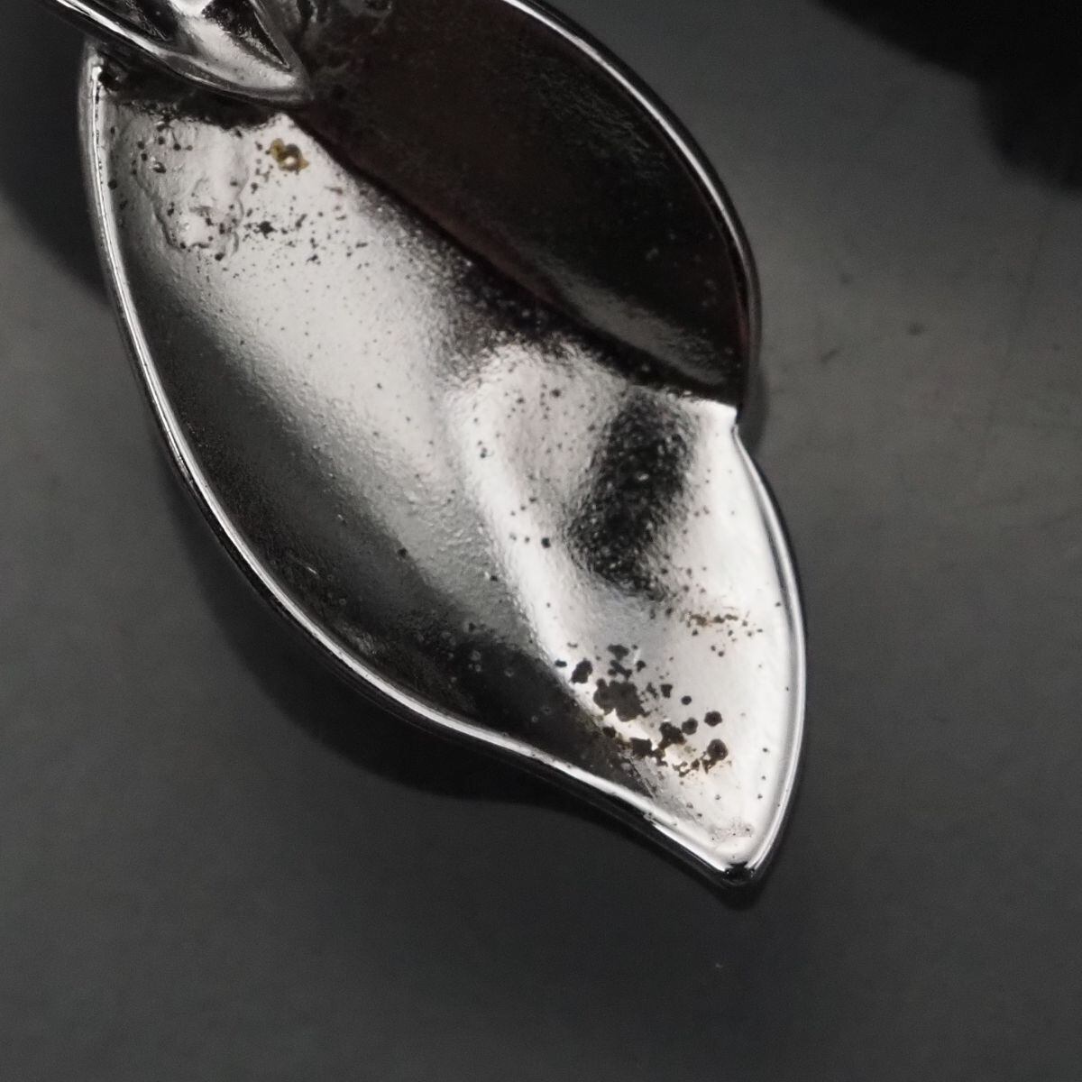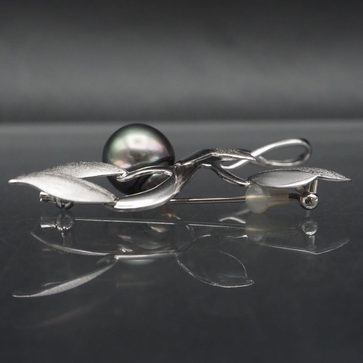 C823 黒蝶真珠 パール SILVER刻印 ブローチ リーフ デザイン シルバー コサージュ 6月誕生石