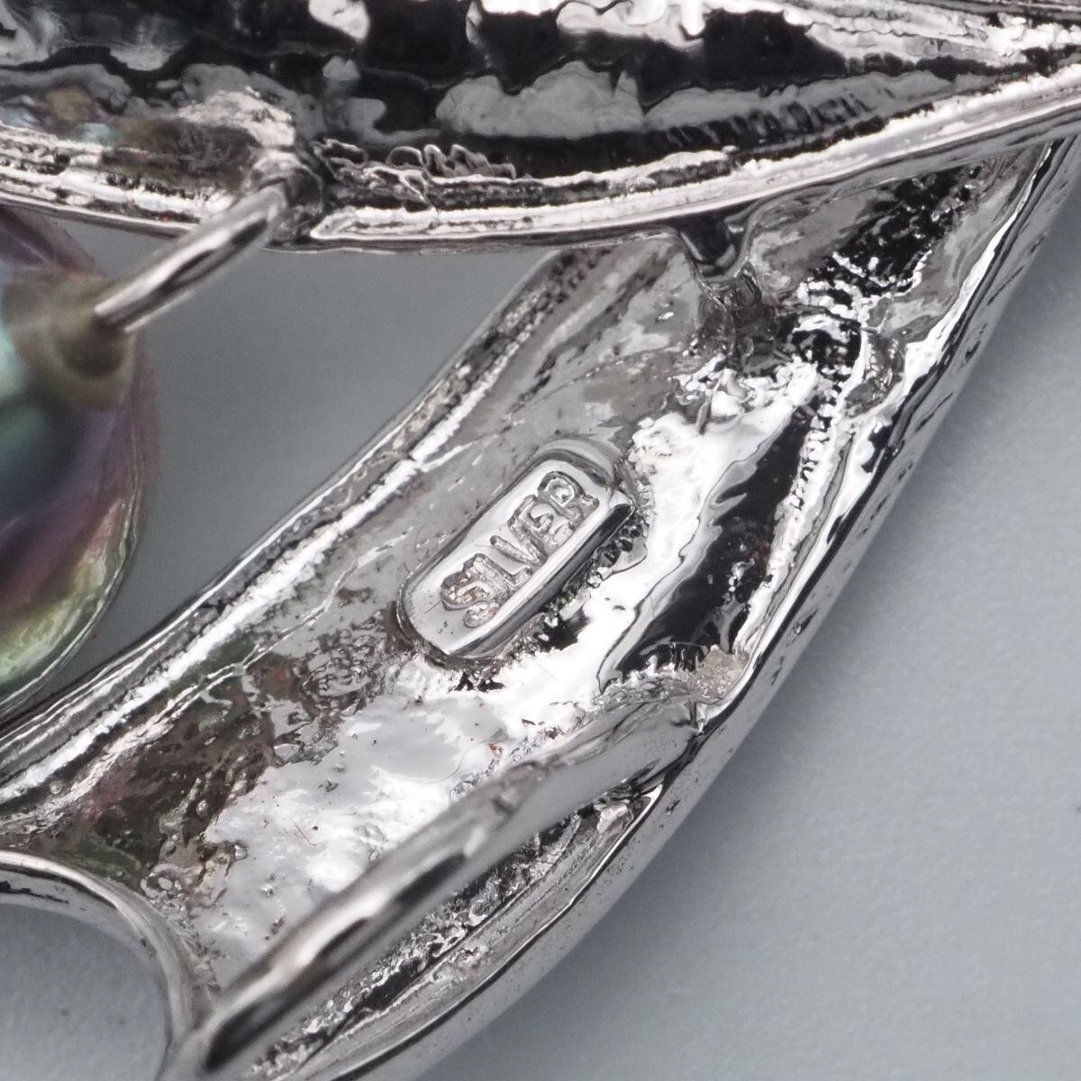 C844 黒蝶真珠 パール SILVER刻印 ブローチ デザイン シルバー コサージュ 6月誕生石