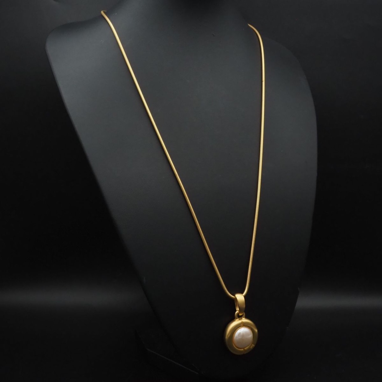 C843 ジバンシイ GIVENCHY ペンダント ネックレス フェイクパール ロゴ ゴールド デザイン