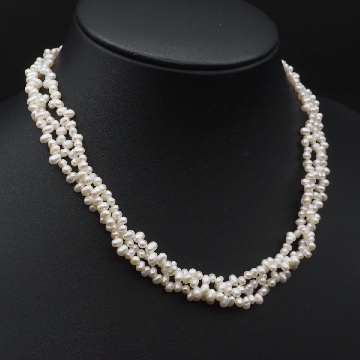 C733 淡水真珠 パール ネックレス 3連 デザイン シルバー 6月誕生石