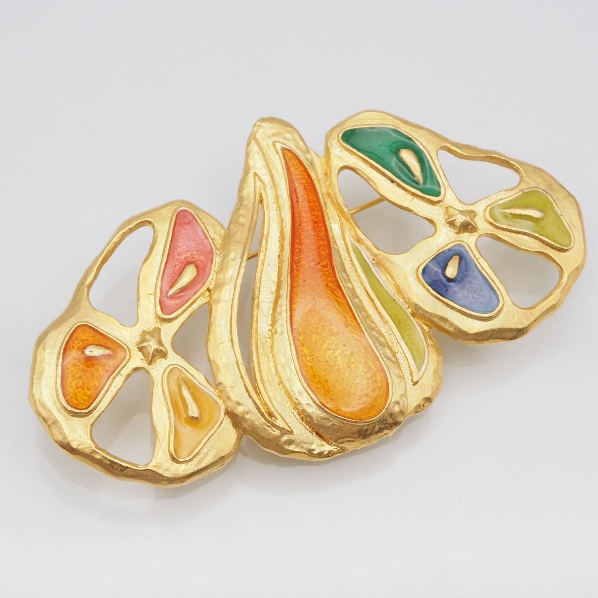 F339 ブローチ 大ぶり マルチカラー エナメル ゴールド デザイン コスチュームジュエリー