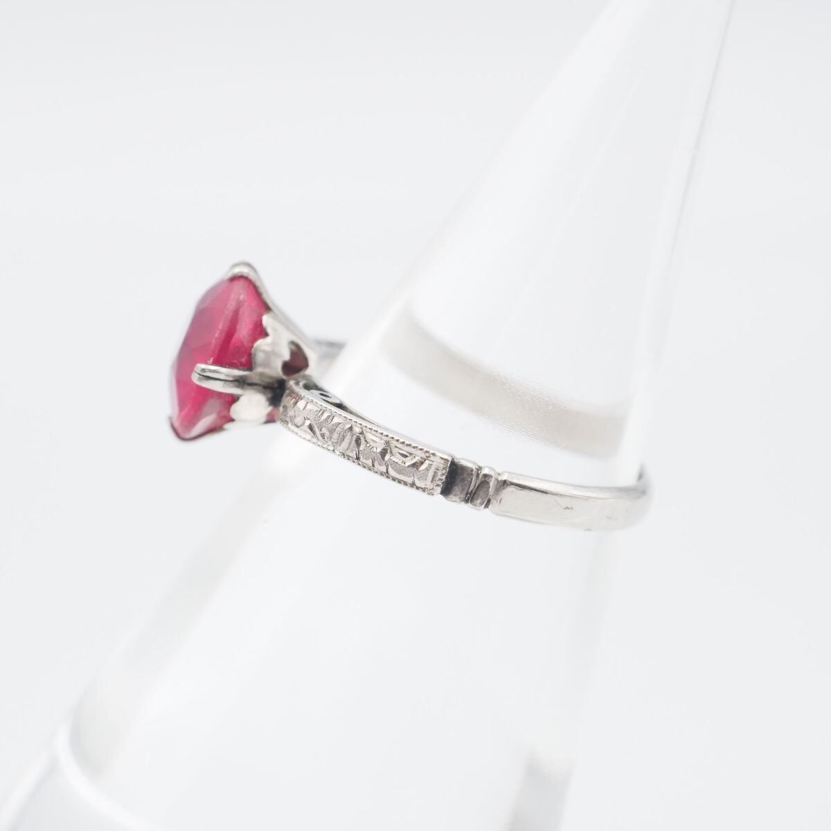 F411 ピンクガラス リング デザイン シルバー 指輪 アンティーク 6号