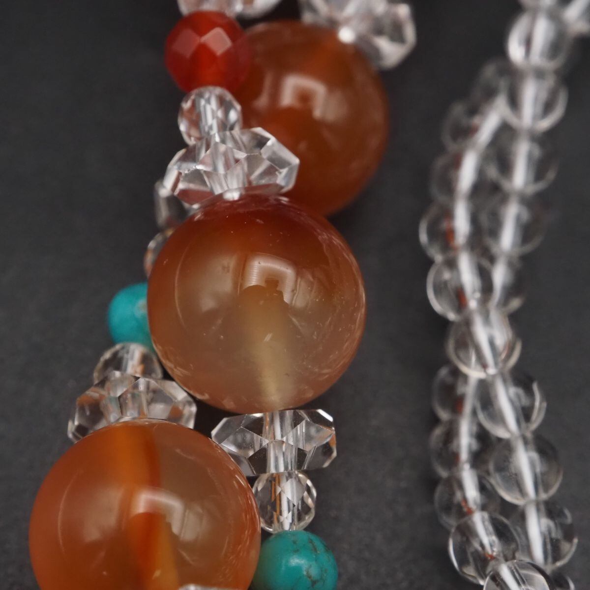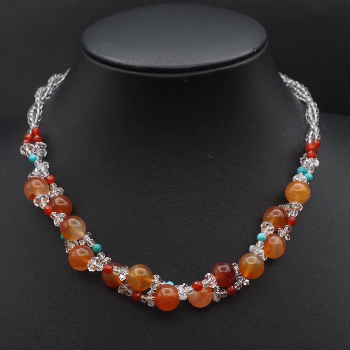 F464 レッドアゲート 赤瑪瑙 メノウ ターコイズ トルコ石 SILVER刻印 ネックレス 水晶 2連 デザイン シルバー 12月誕生石