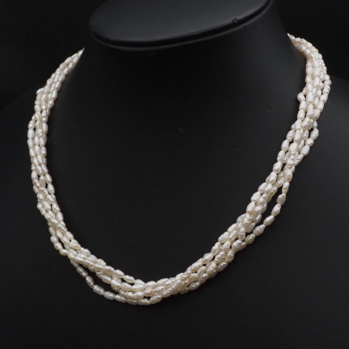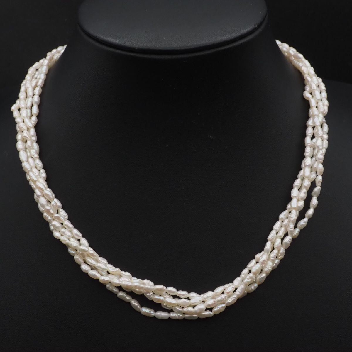 F441 淡水真珠 パール ネックレス 5連 ゴールド デザイン シルバー 6月誕生石