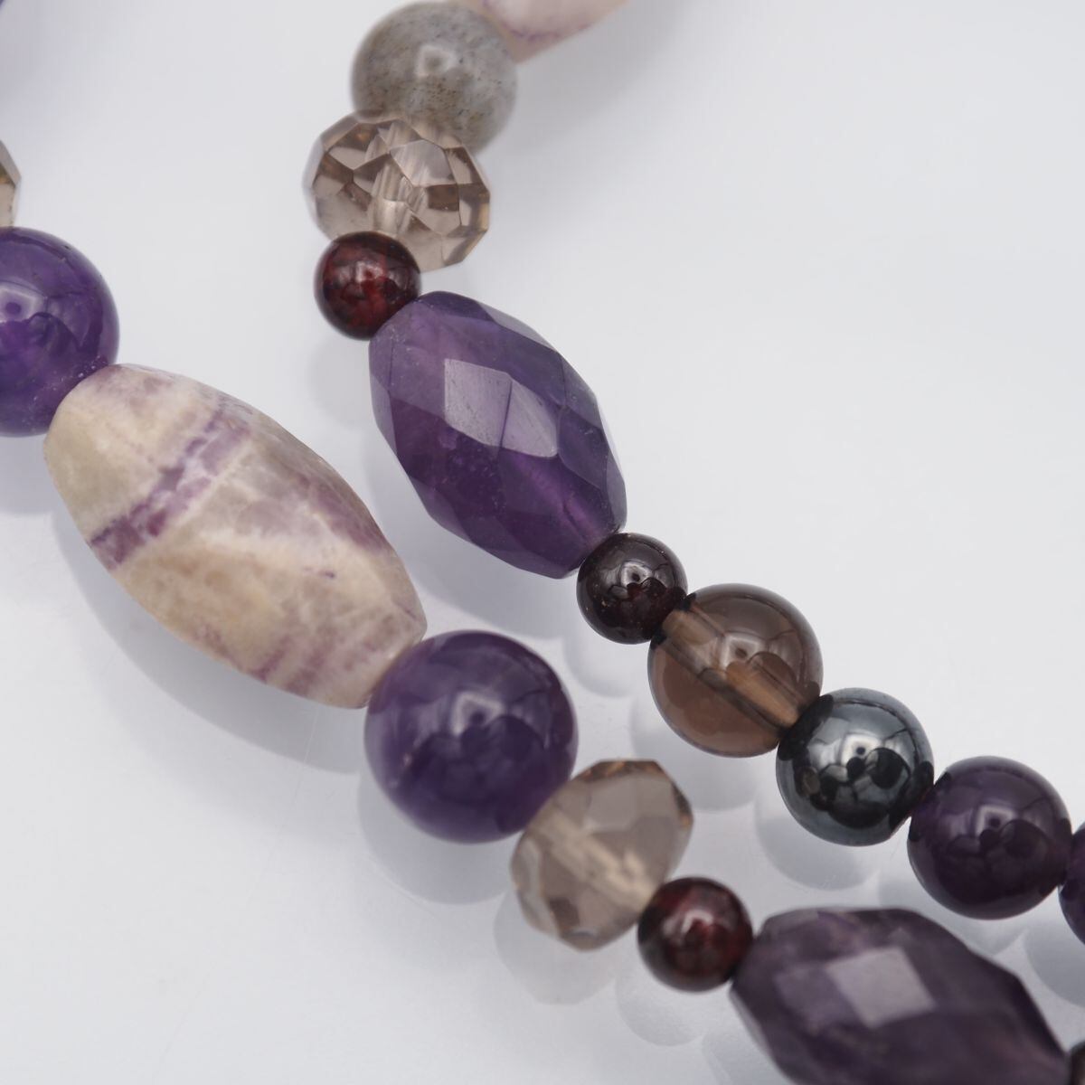 F447 アメジスト スモーキークォーツ ラブラドライト 925刻印 ネックレス デザイン シルバー 2月誕生石