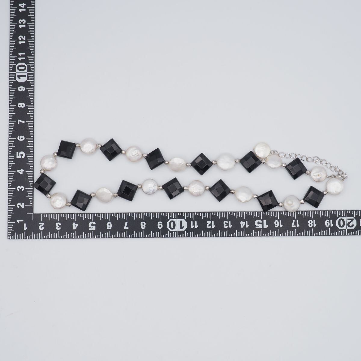 F393 バロック コインパール 真珠 オニキス STERLING刻印 ネックレス デザイン シルバー 6月誕生石