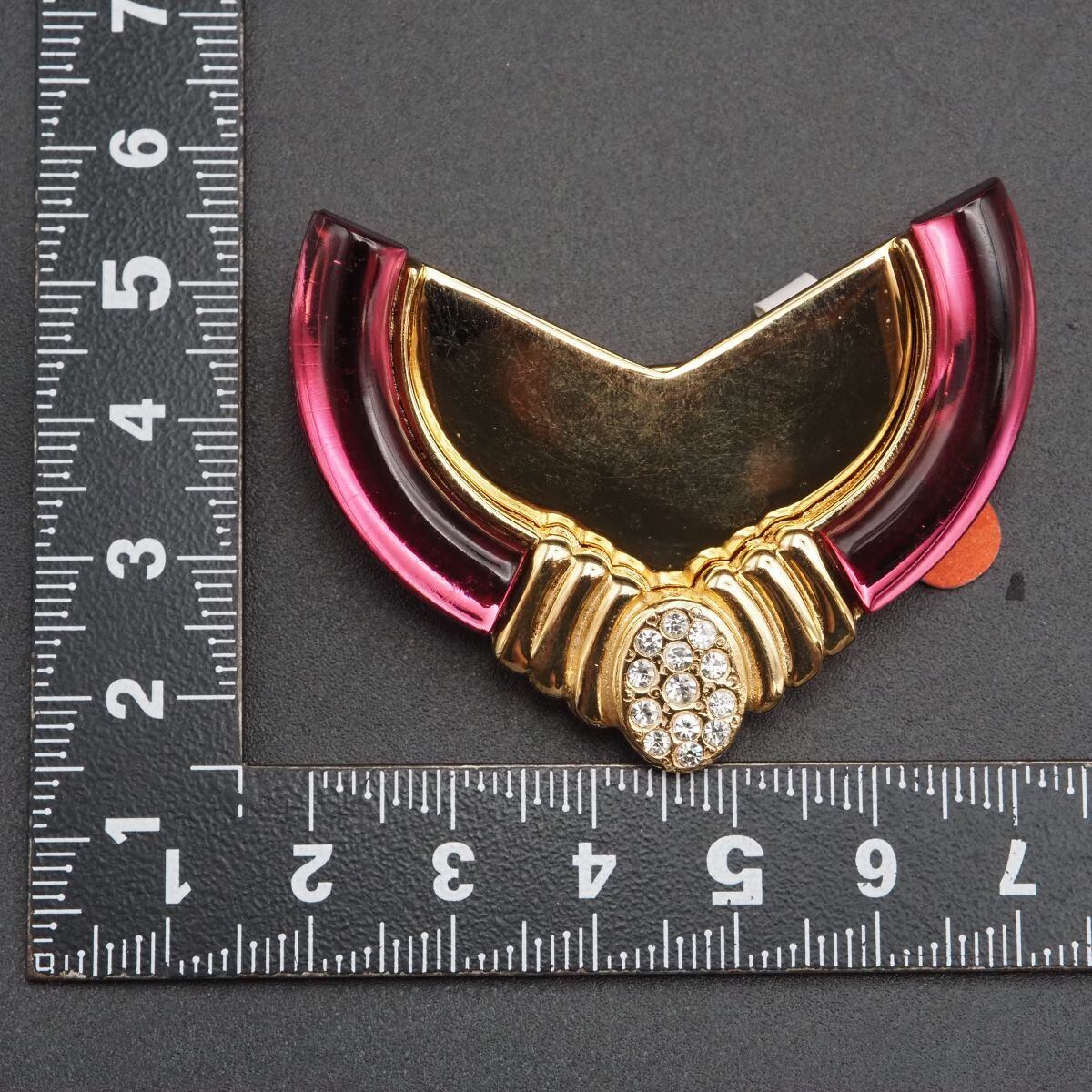 F310 ブローチ ピンク系カラー ラインストーン パヴェ ゴールド デザイン コスチュームジュエリー