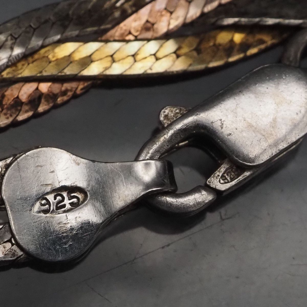 F548 ヴィンテージ 925 ITALY刻印 ネックレス スネークチェーン 3連 編み込み ミックスカラー デザイン シルバー