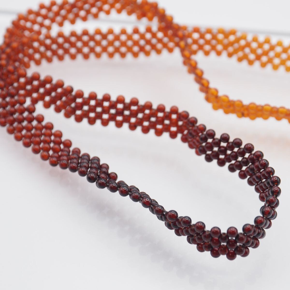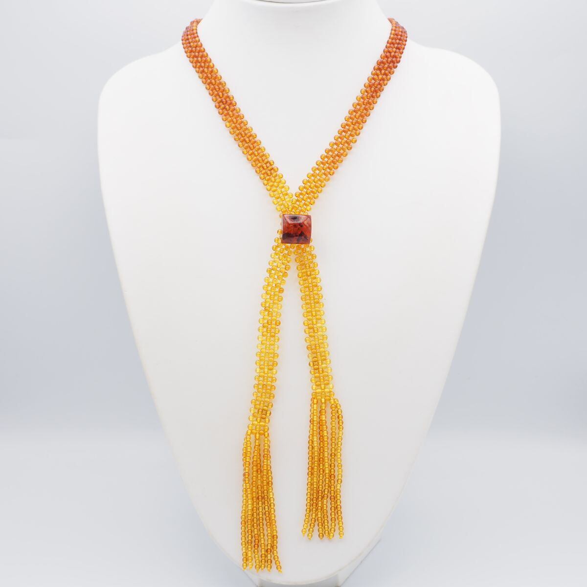 F516 琥珀 コハク アンバー ラリエット ネックレス ピンブローチ 編み込み グラデーションカラー デザイン