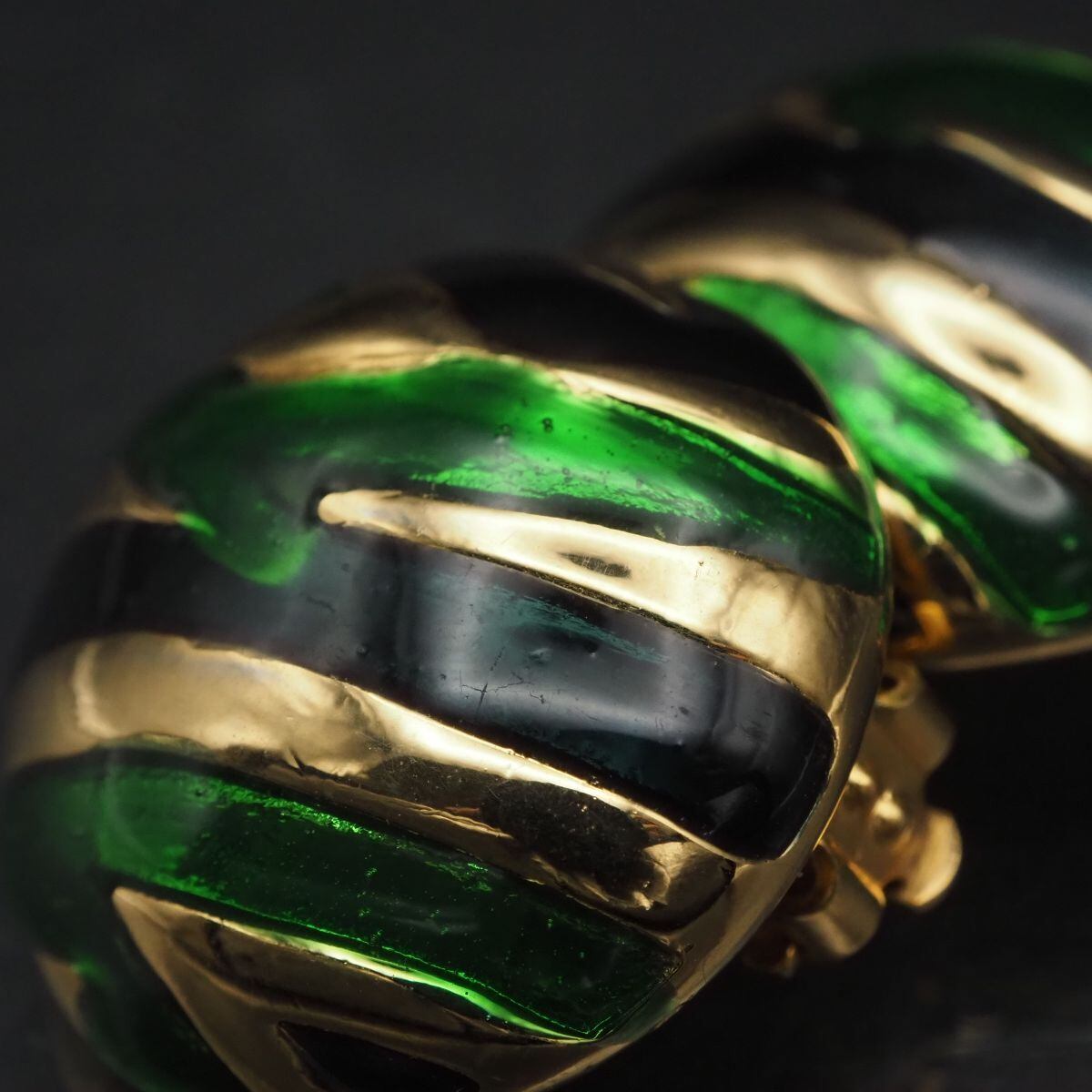 F260 イヤリング グリーンエナメル ゴールド デザイン コスチュームジュエリー