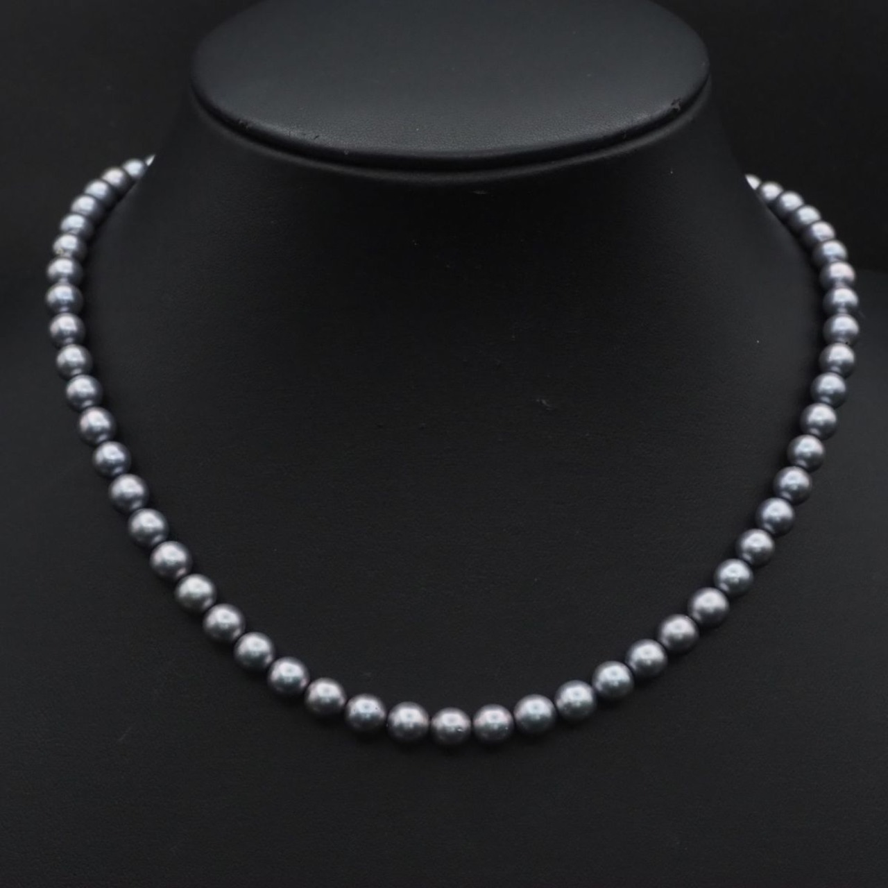 F830 本真珠 6.4mm珠 パール SILVER刻印 ネックレス グレー系カラー デザイン シルバー 6月誕生石