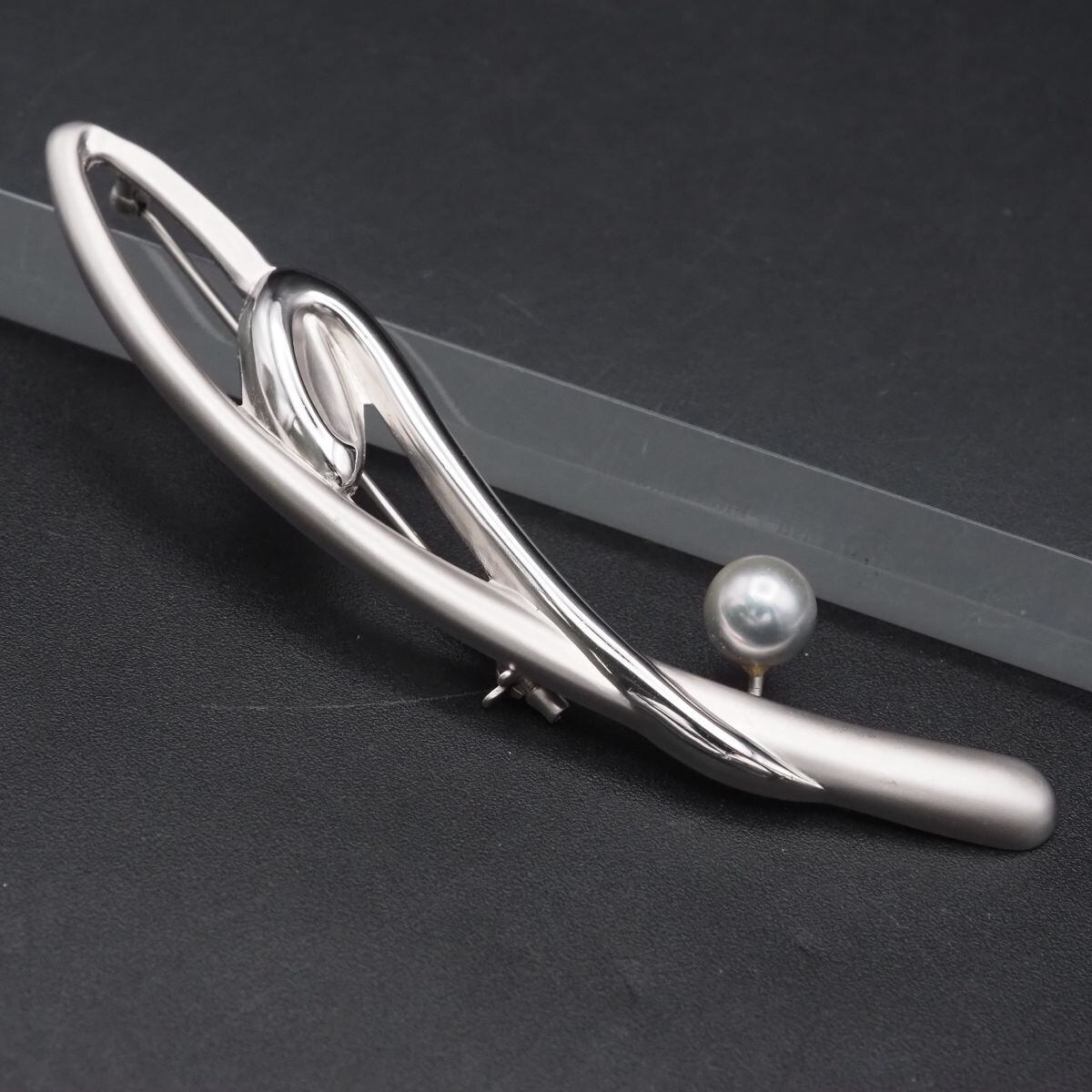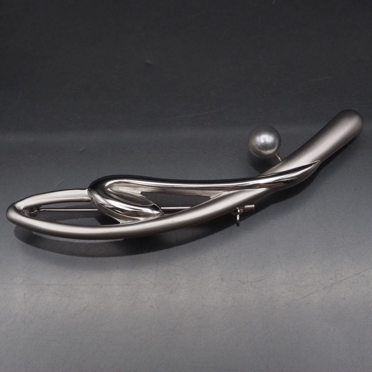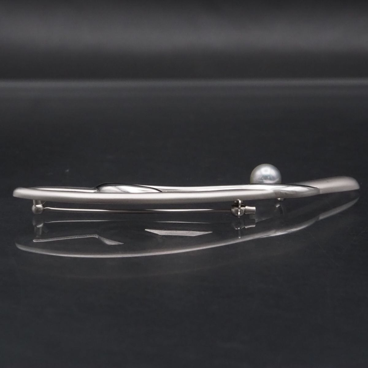 F641 本真珠 7.4mm珠 パール SILVER.925刻印 ブローチ グレー系カラー デザイン シルバー コサージュ 6月誕生石