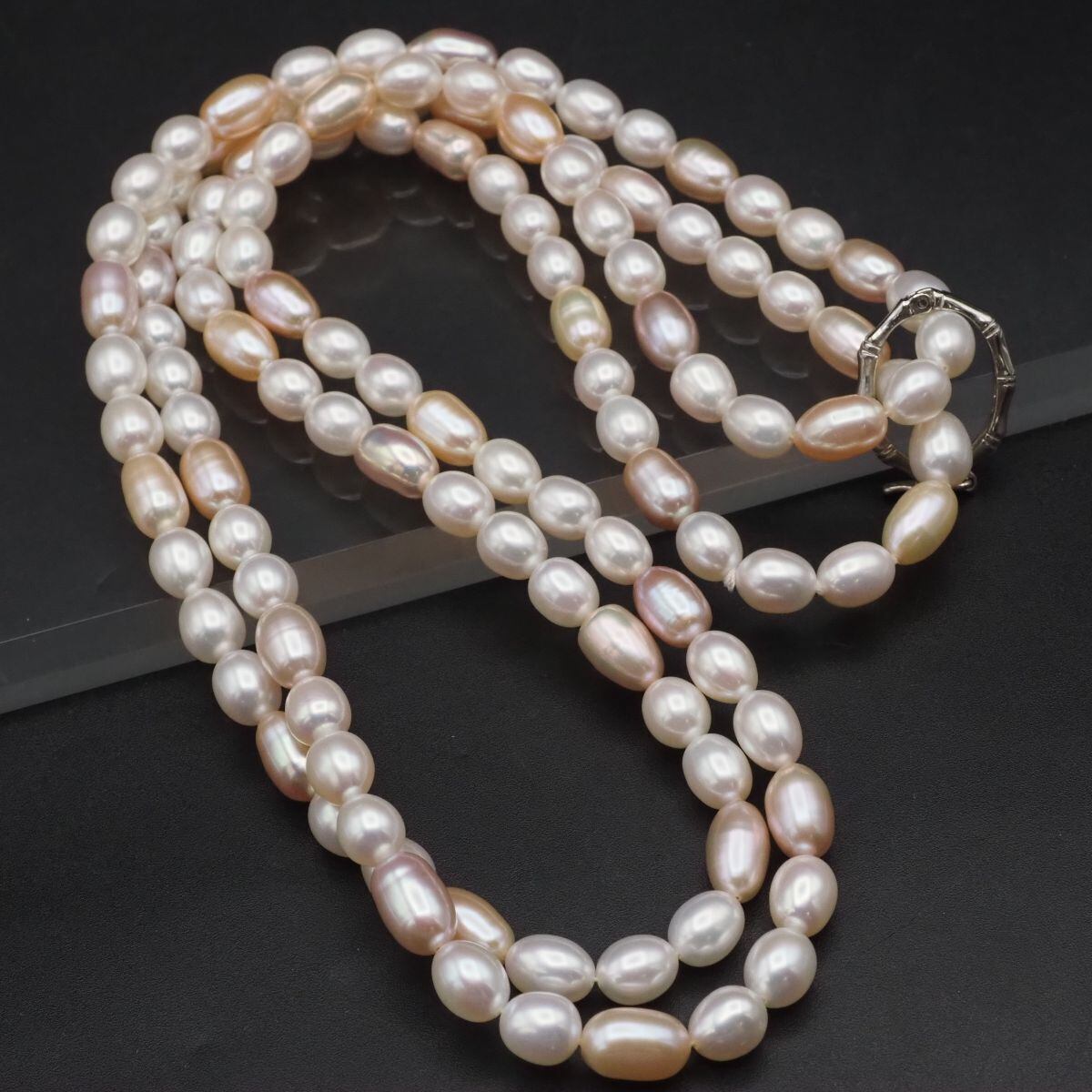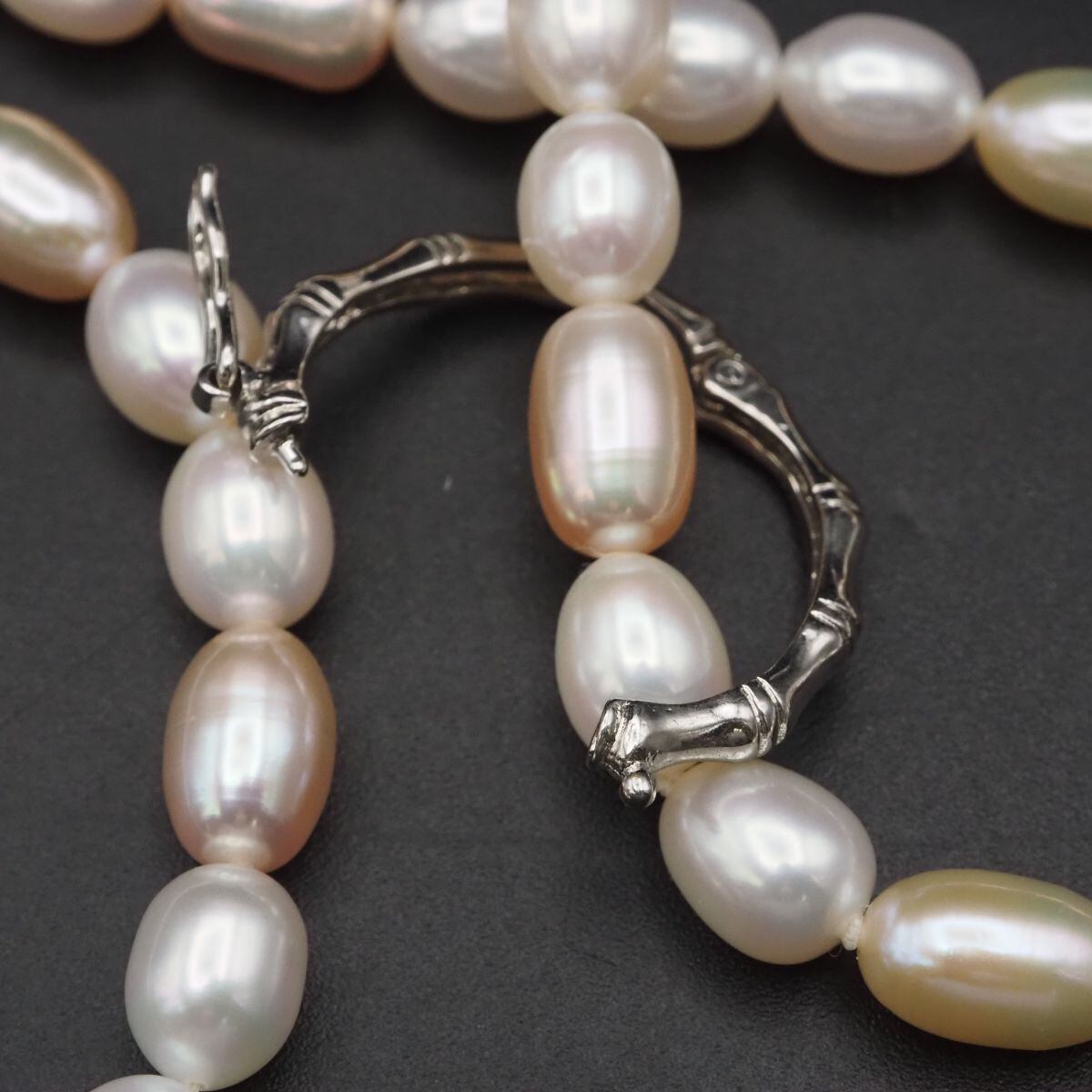 F857 淡水真珠 パール ネックレス ミックスカラー デザイン シルバー 6月誕生石